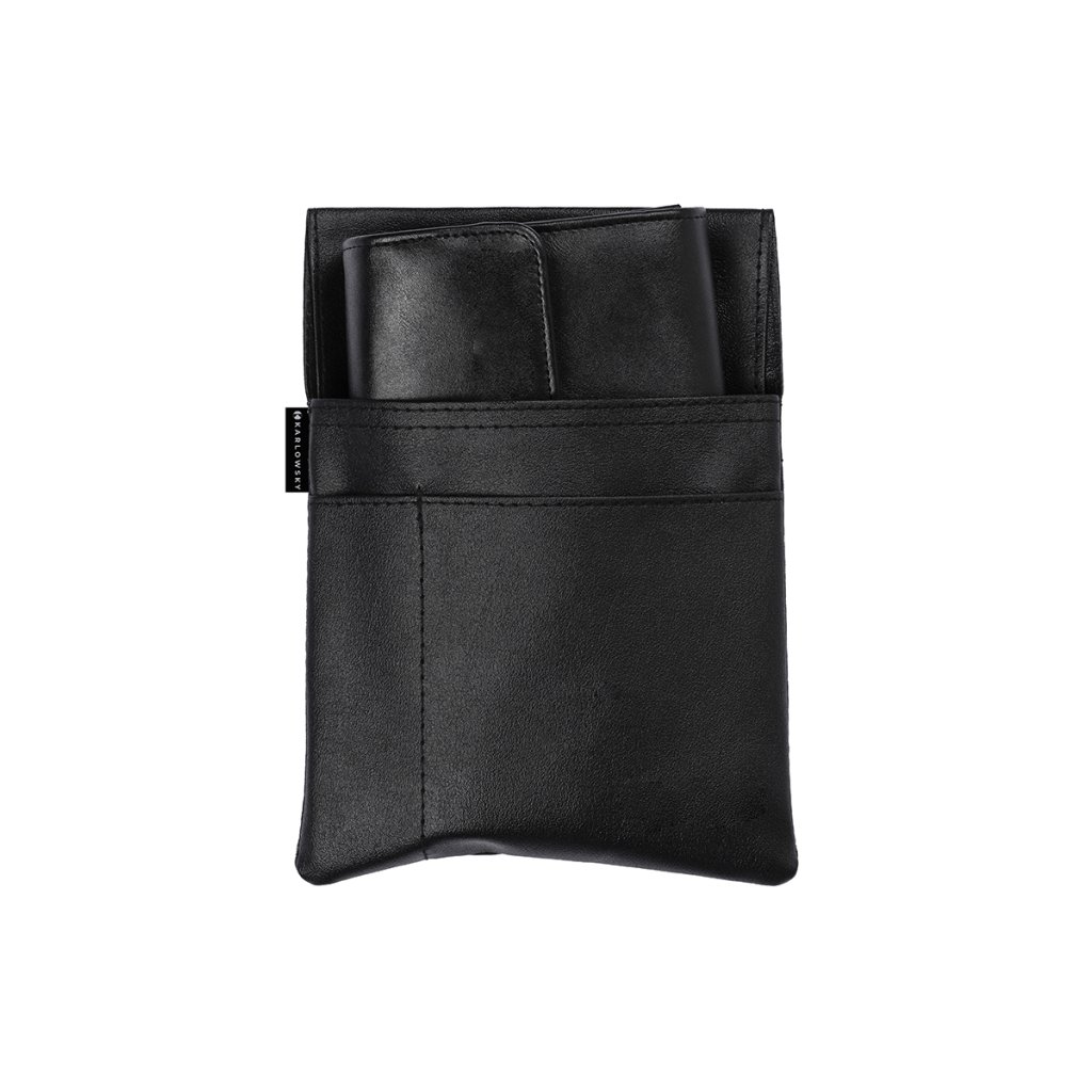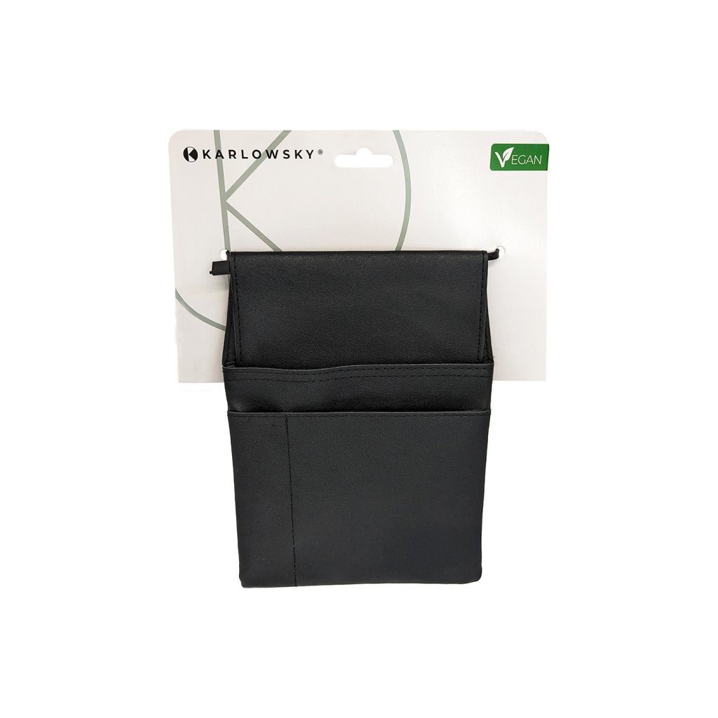 | rozměry: 16 x 22 cm (šířka x výška) | materiál: polyester | materiál: polyester | robustní a multifunkční pouzdro pro číšníky | ideální pro použití v restauracích, kavárnách a barech | 1 velká hlavní přihrádka pro uložení čteček EC a kreditních karet, mobilních objednávkových a pokladních zařízení nebo jiného náčiní | 1 malá kapsa na poznámkové bloky nebo smartphony | 1 přihrádka na pera a tužky | s průchodem pro opasek (6 cm) pro připevnění k zástěře a opasku | odpovídající výrobek: Peněženka pro číšníky – KZB 40 (číslo výrobce)Doplňkové parametry