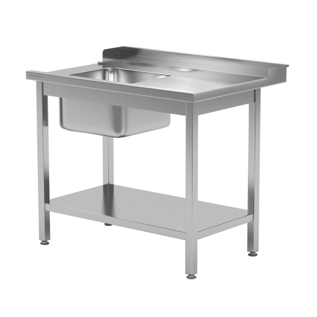 Pravostranný vkládací stůl s dřezem a policí pro myčku nádobí s odsavačem par 1300x700x850 mm | TECHNICA, 239P1370
