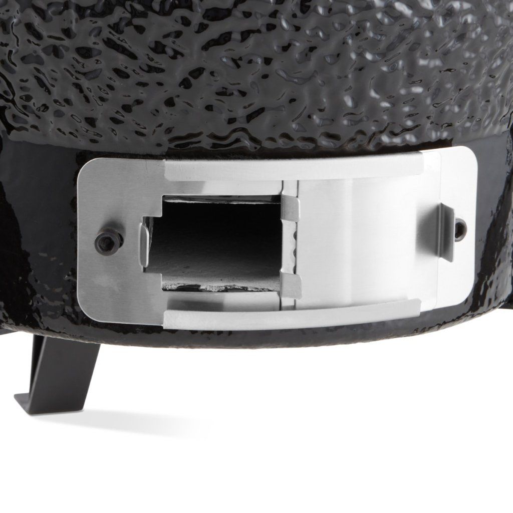 Nastavitelný přívod vzduchu ve spodní části a výstup vzduchu ve víku zajišťují optimální cirkulaci vzduchu. Pomocí něj můžete upravovat teplotu pokrmů. Výhodou jsou také nastavitelné grilovací desky, které vám umožní umístit pokrmy do ideální výšky nad oheň. Stěny a ohniště jsou keramické a zajišťují, že na Kamado nebudou mít vliv vysoké teploty ani teplotní rozdíly.