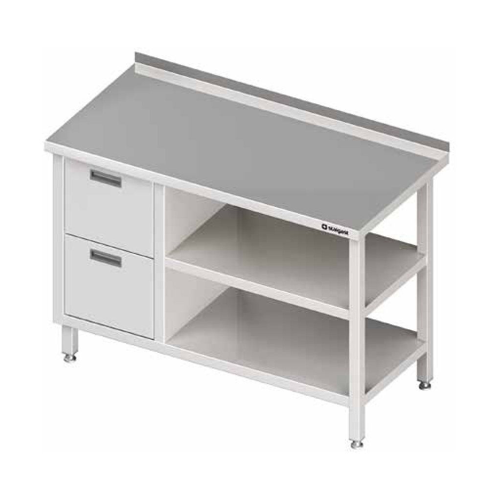 Přístěnný stůl, blok se dvěmi zásuvkami po levé straně a dvěmi policemi 1600x700x850 mm | STALGAST, 980287160