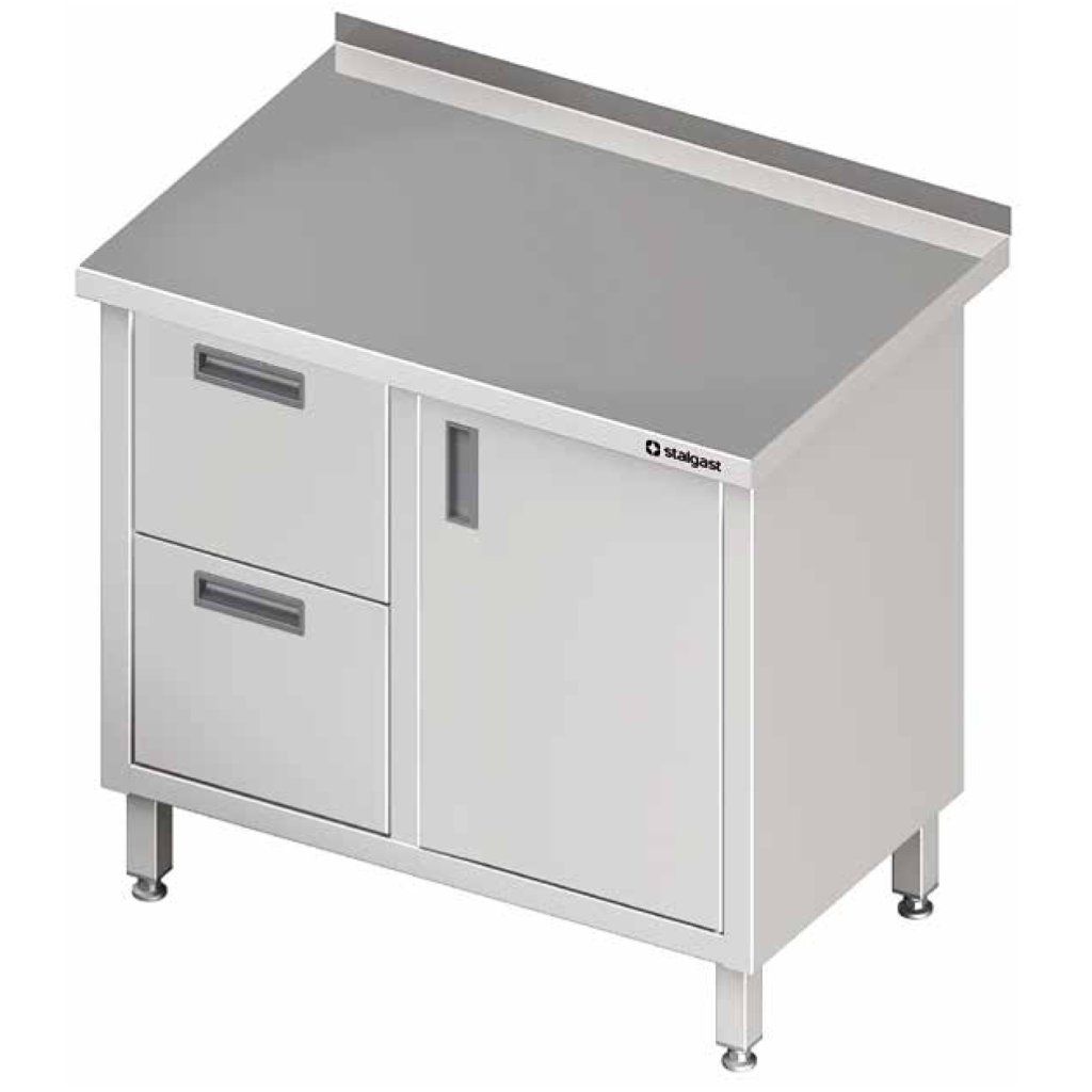Přístěnný stůl, blok se dvěmi zásuvkami po levé straně a skříňkou s křídlovými dveřmi 900x600x850 mm | STALGAST, 980306090