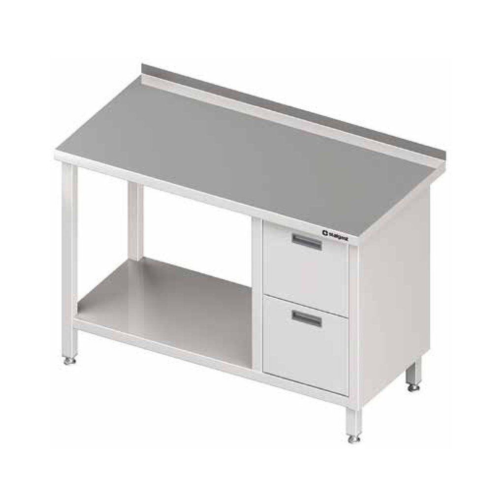 Přístěnný stůl, blok se dvěmi zásuvkami po pravé straně a policí 1500x600x850 mm | STALGAST, 980276150