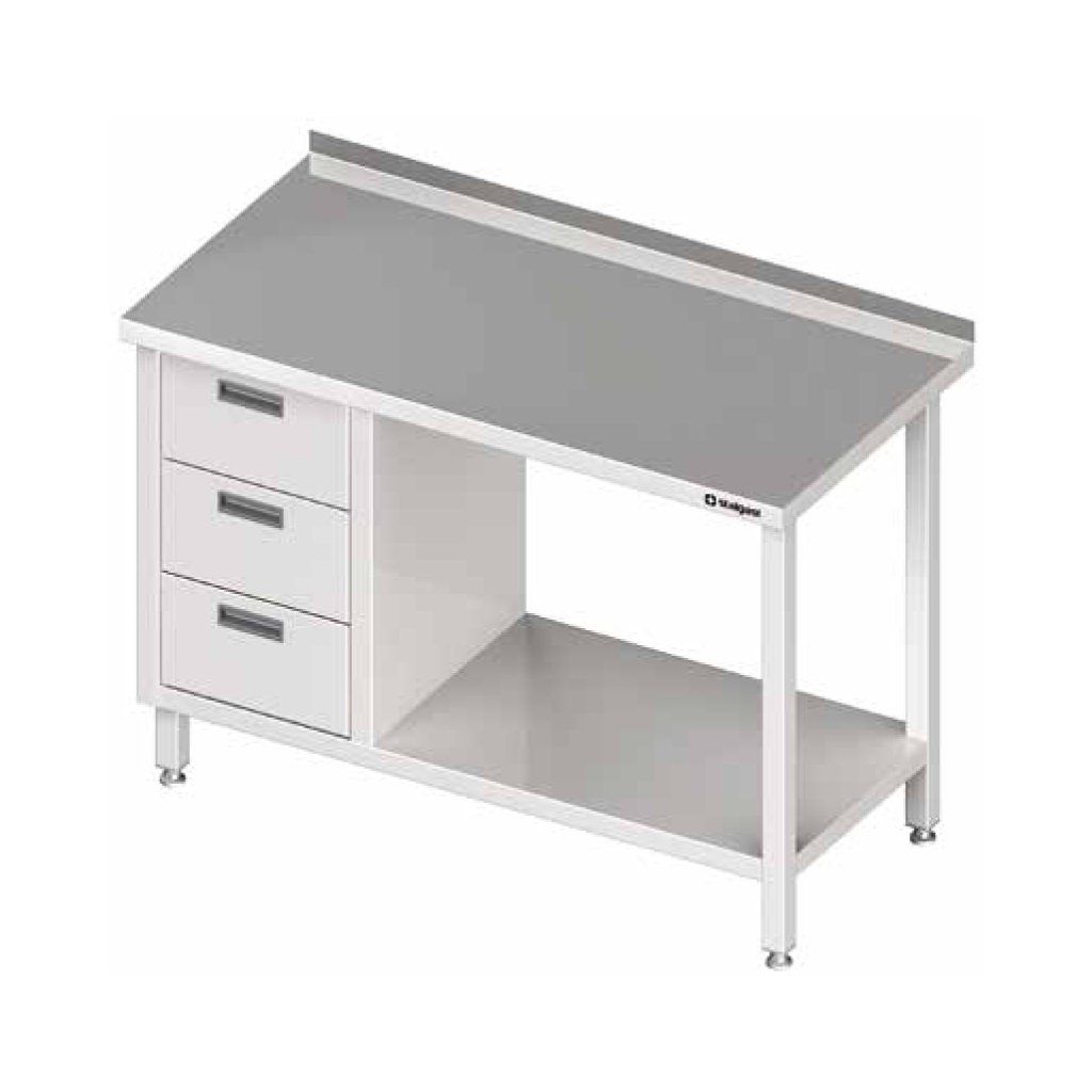 Přístěnný stůl, blok tří zásuvek po levé straně a s policí 1100x700x850 mm | STALGAST, 980387110