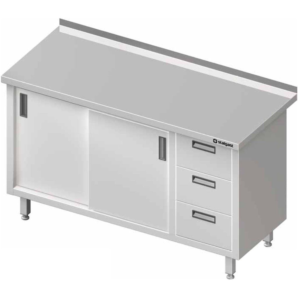 Přístěnný stůl, blok tří zásuvek po pravé straně a skříňkou s posuvnými dveřmi 1300x600x850 mm | STALGAST, 980476130
