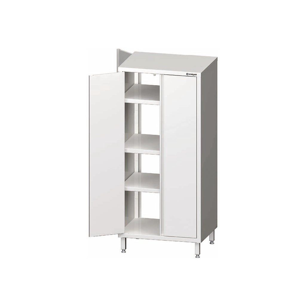 Průchozí skříň 700x500x1800 mm vyrobená z nerezové oceli. Křídlové dveře. Dvě nástavitelné police , prostřední připevněná na trvalo. Volitelná montáž zámku.Doplňkové parametry