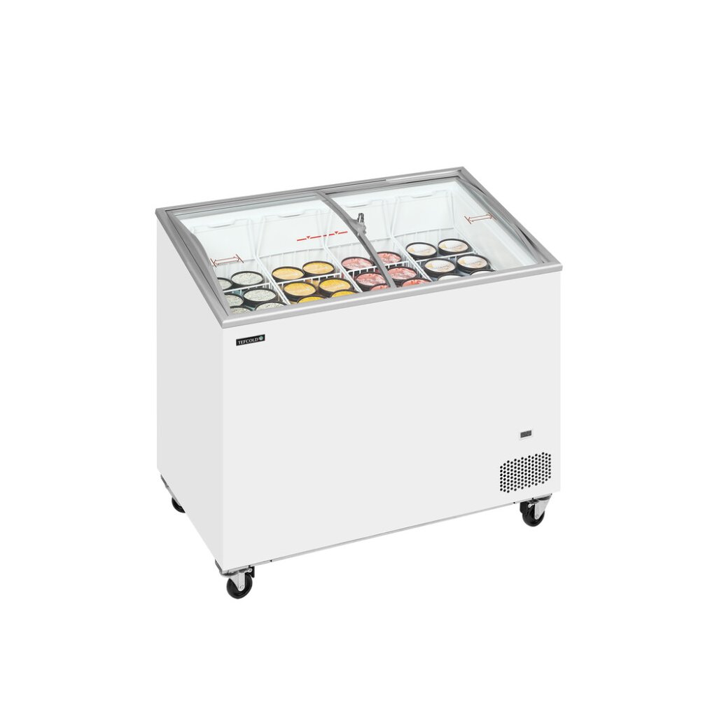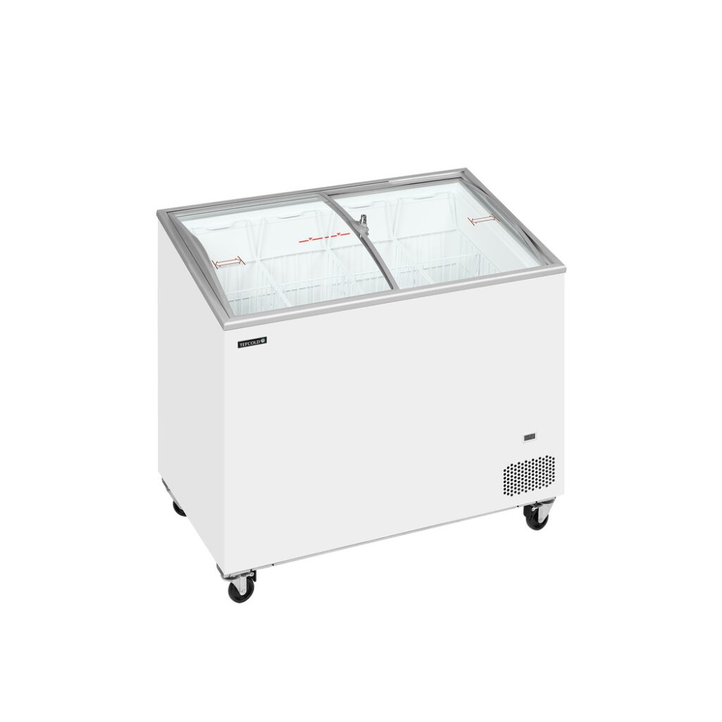 Pultová mraznička s proskleným oblým víkemTEFCOLD IC-SCEB je cenově výhodná kompaktní pultová mraznička. Je skvělá pro začínající firmy, sezónní výprodeje atd. Má velmi stabilní a pevnou konstrukci a kolečka pro snadnou manipulaci v obchodě. Dodává se v různých velikostech. Díky mnoha velikostem je tento model ideální pro menší obchody a lahůdky s omezeným prostorem, stejně jako větší obchody, čerpací stanice, supermarkety atd. Všechny velikosti jsou šetrné k životnímu prostředí. Řada SCEB má sníženou přední část a zakřivené posuvné skleněné víka. To poskytuje lepší prezentaci obsahu. Díky tomu je mraznička ideální pro vystavení mražených potravin včetně zmrzliny. Teplota uvnitř může být -14 °C pro zmrzlinu nebo -21 °C pro ostatní mražené potraviny. Všechny velikosti mají prosklená víka s bezpečnostním zámkem. Mají také odmrazovací otvor pro čištění jednotky.