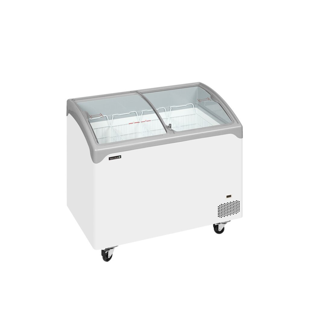 Pultová mraznička s proskleným oblým víkemTEFCOLD NIC-SCEB je kompaktní pultová mraznička v elegantním designu. Má zakřivené rohy, zaoblené hrany a posuvná prosklená víka. Má velmi stabilní konstrukci a kolečka pro snadnou manipulaci po obchodě. Dodává se v mnoha velikostech, díky čemuž je tento model ideální pro menší obchody a lahůdkářství s omezeným prostorem, čerpací stanice, supermarkety atd. Všechny velikosti jsou šetrné k životnímu prostředí. Řada SCEB má nákloněnou výstavní plochu a oblá posuvná prosklená víky. Obě funkce poskytují lepší prezentaci obsahu. Díky tomu je mraznička ideální pro vystavení mražených potravin včetně zmrzliny. Teplota uvnitř může být -14 °C pro zmrzlinu nebo -21 °C pro ostatní mražené potraviny. Všechny velikosti mají prosklená víka s bezpečnostním zámkem. Mají také odmrazovací otvor pro čištění jednotky.