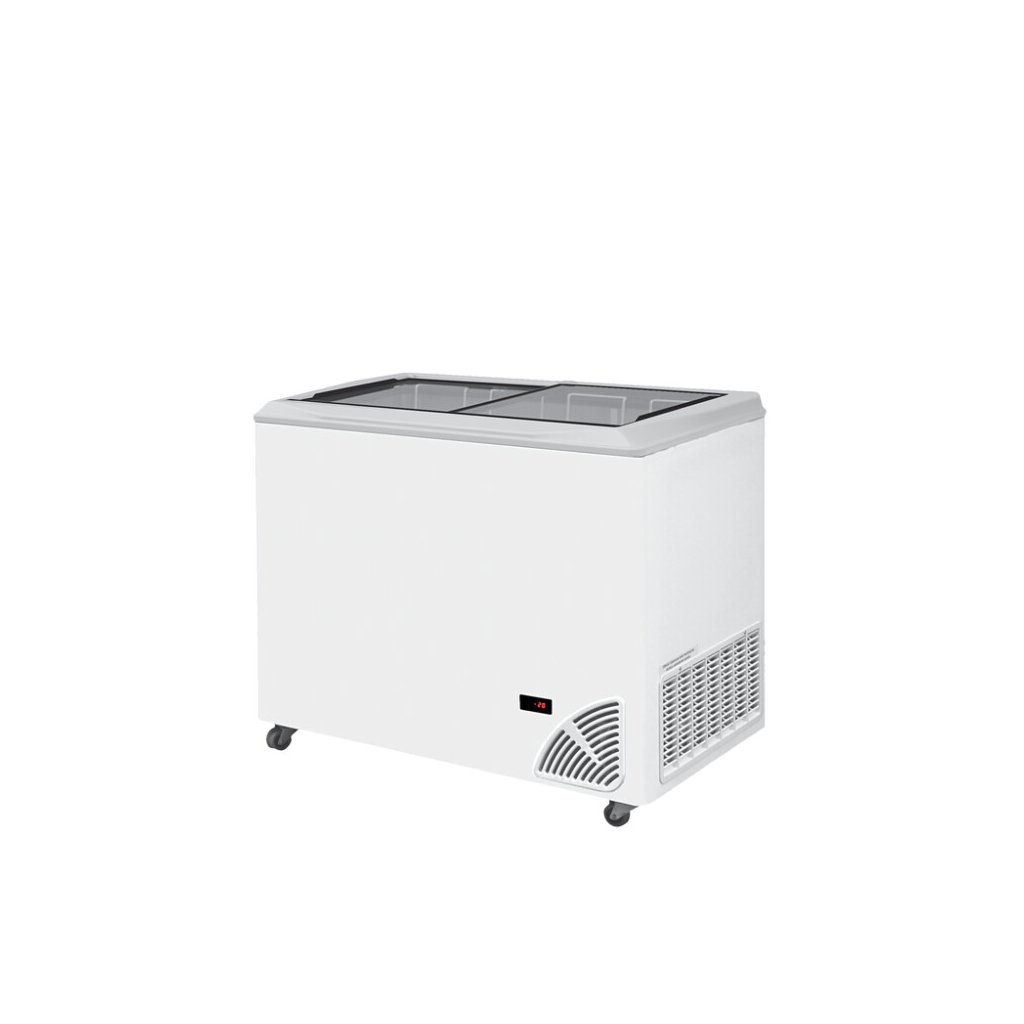 Pultová mraznička prosklené rovné víko | ARO 301/2 White Edge