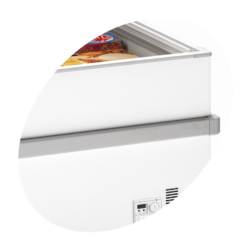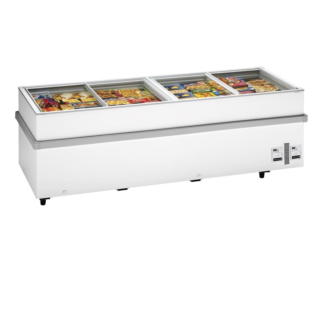 určeno pro instalaci ostrovů, skvělá viditelnost produktů, posuvná prosklená víka, statické chlazení, nárazové lišty, nastavitelné nohyDoplňkové parametry