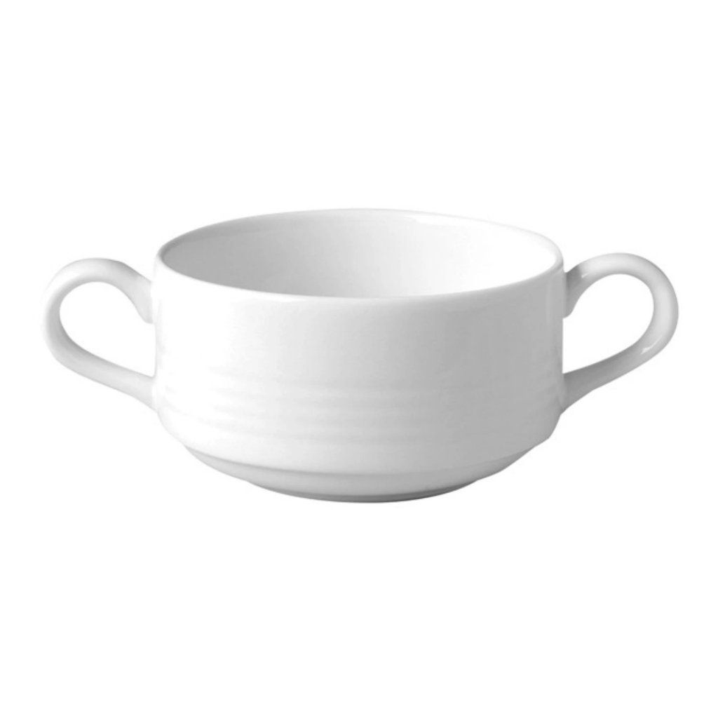 Šálek na polévku poznáte na první pohled podle elegantního designu doplněného o kruhové linky. Vzhled ale není jedinou jeho předností. Další výhodu představuje i vysoká odolnost, která zaručuje dlouhou životnost. Proto se šálek perfektně hodí do rušných provozů, kde se dveře nezavřou. Jeho dvě ucha usnadňují servírování.Šálek na polévku 30 cl