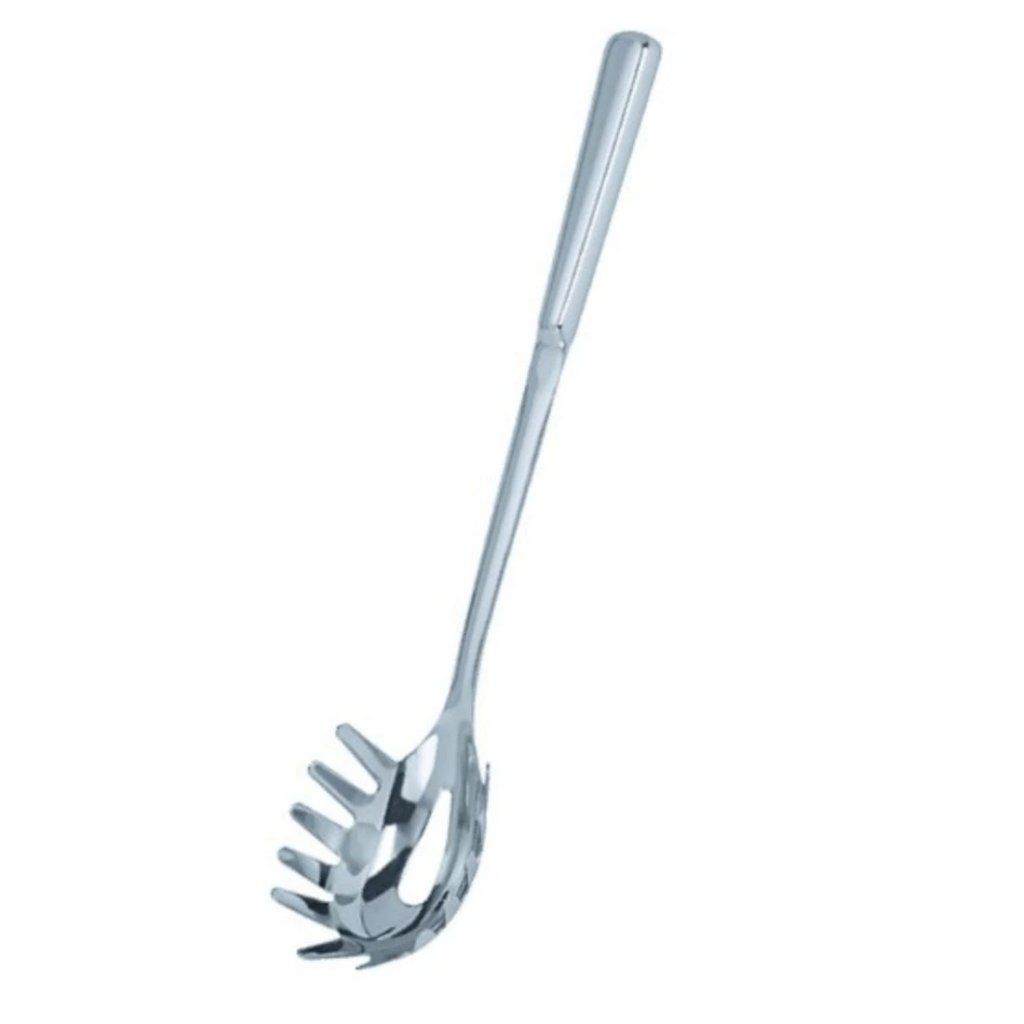 Servírovací náčiní vyrobené z velmi kvalitní nerezové oceli 18/10 ve vysokém lesku představuje skvělého praktického pomocníka pro nabírání a servírování špaget, ale i jiných těstovin. Ideální do každé restaurace, bufetu, bistra nebo jídelny, neboť představuje nepostradatelný nástroj v každé profesionální i domácí kuchyni a bufetových zařízeních. Nemá žádné viditelné spoje a lze ho mýt v myčce nádobí.Servírovací náčiní na špagety32,5 cm