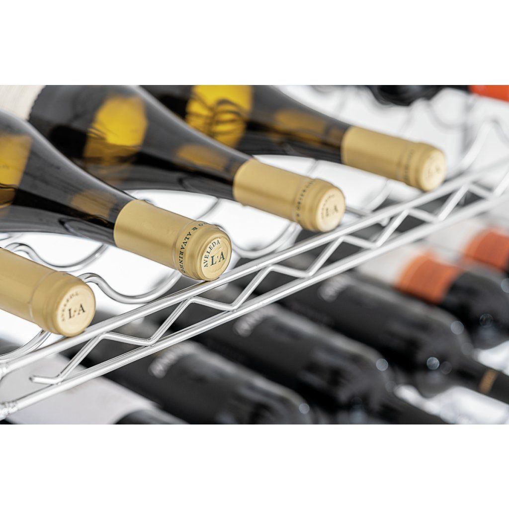 Regál umožňuje uložit až 130 lahví vína naležato na 5 chromovaných policích na lahve, a tím šetří místo i zajišťuje přehledné uspořádání. Díky jednoduchému zásuvnému systému je montáž rychlá a regál je ihned připraven k použití.