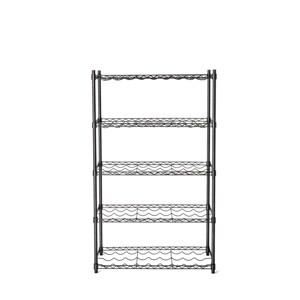 Regál na víno ocelový s práškovým nástřikem, černý, 5-ti policový, 900x350x1500 mm | TECHNICA, Black Line