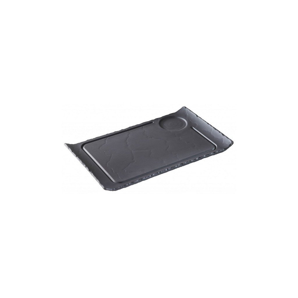 Basalt talíř obdélný s drážkou a prolisem 33 × 20 cm