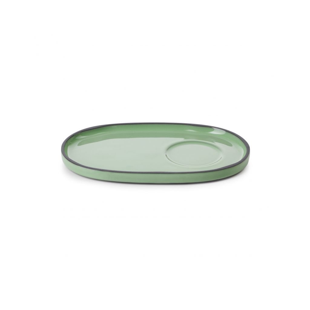 Caractére podšálek je perfektním doplňkem šálku ze stejné kolekce. Díky svému oválnému a jednoduchému designu přináší do servírování kávy eleganci, která oslní každého zákazníka.Podšálek 18 × 11 cm – mint