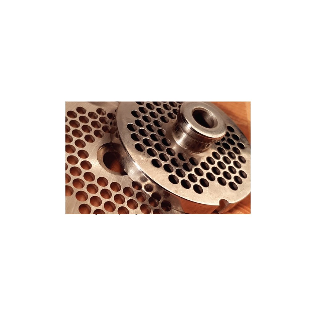 Řeznická deska slouží jako síto k elektrickému mlýnku. Má otvory o průměru 3 mm.Řeznická deska 3 mm