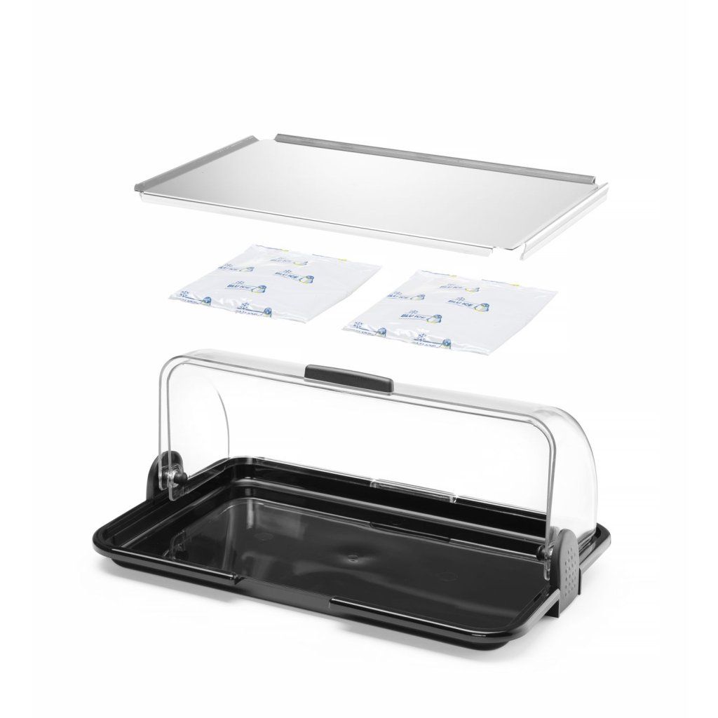 K servírování sýrů, uzenin, chleba, koláčů nebo občerstvení.Vyrobeno z polypropylenu s vložkou z nerezové oceli.Průhledný kryt Rolltop z polystyrenuDokonalá expozicePohodlný přístup k servírovaným potravinám z obou stran vitríny.Dvě funkce: zobrazení chlazení nebo topeníChladicí/ohřívací prvky umístěné pod vložkou z nerezové oceli udržují teplotu v přihrádce a udržují potraviny déle čerstvé a krásné.Snadno se čistí.Rychlá montáž/demontáž.Barva zásobníku: černý kryt s vložkou z nerezové oceli.Navrženo a vyrobeno 100% v Itálii.Sada obsahuje 2 gelové vložky pro chlazení nebo ohřívání potravin umístěných ve vitríně.Neobsahuje škodlivý bisfenol A.Lze mýt v myčce nádobí.Doplňkové parametry