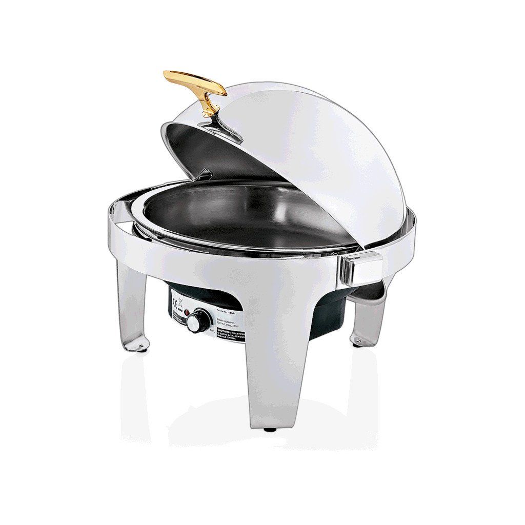 Elektrický chafing se skvěle hodí pro podávání různých snídaňových či jiných rautů všude, kde je nutné zajistit teplé jídlo. Roll-Top víko usnadňuje otvírání chafingu a podávání jídla vám i vašim hostům.Rolltop chafing pr. 40 cm