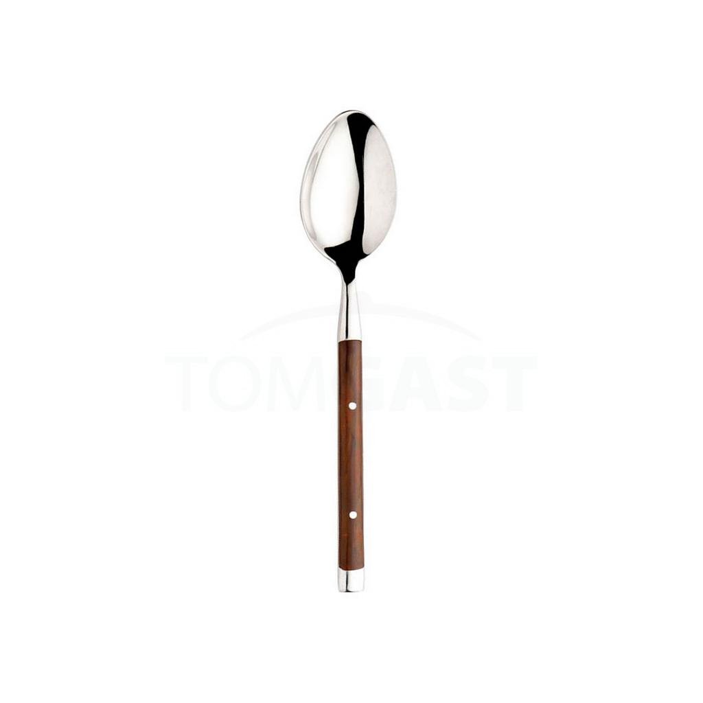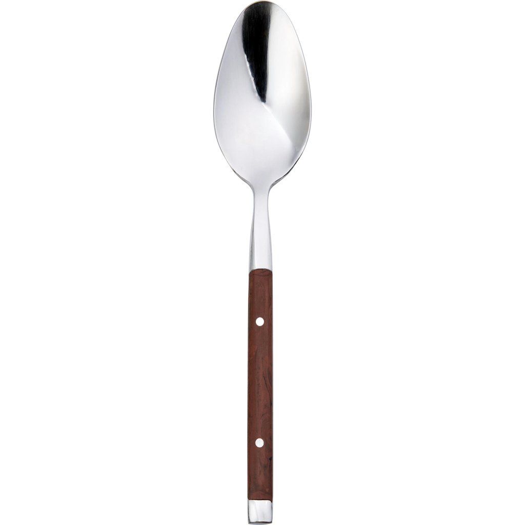 Jídelní lžíce z kolekce Rustic je elegantní příbor, který si najde místo v podhorských hotelech nebo country restauracích. Její rukojeť zdobí prvotřídní plast, který svým designem připomíná masivní dřevo, ale zároveň využívá všech výhod plastu. Na výrobu vidličky se používá také nerezová ocel 18/0. Ta garantuje vysokou odolnost proti korozi a zároveň slibuje dlouholetou výdrž i při každodenním používání.Lžíce jídelní 19,8 cm