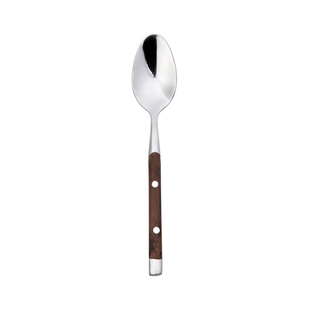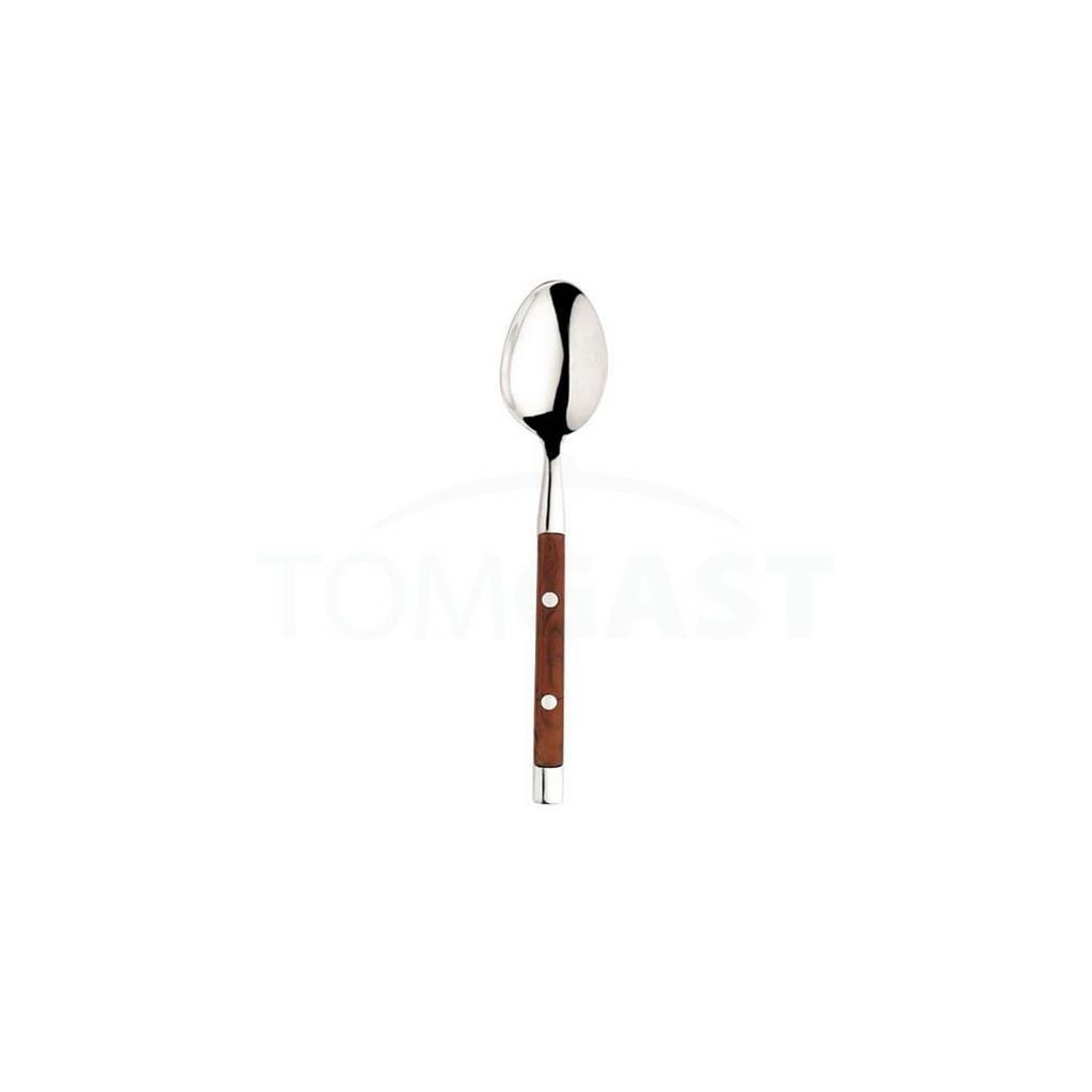 Lžička moka z kolekce Rustic je elegantní příbor, který si najde místo v podhorských hotelech nebo country restauracích. Její rukojeť zdobí prvotřídní plast, který svým designem připomíná masivní dřevo, ale zároveň využívá všech výhod použitého materiálu. Na výrobu lžičky se používá také nerezová ocel 18/0. Ta garantuje vysokou odolnost proti korozi a zároveň slibuje dlouholetou výdrž i při každodenním používání.Lžička moka 11,2 cm
