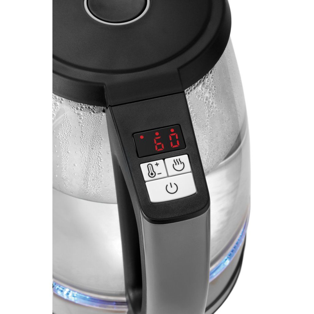 Díky atraktivní skleněné konstrukci a modře podsvícené základně je konvice působivá nejen vizuálně. Výkonné provedení s displejem, různými teplotními režimy a funkcí udržování teploty splní i vyšší technické nároky na každodenní používání.