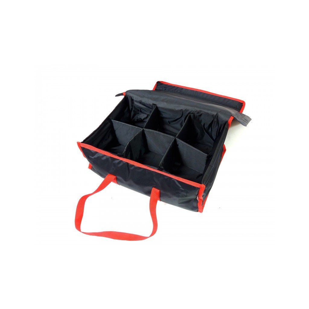 Taška určená k pohodlnému přenášení 12 krabic na hamburgery o rozměrech 15 x 15 x 8 cm, k dispozici ve standardní a vyhřívané verzi, s přihrádkami na suchý zip a kapsou na vyztužení dna. Standardní barvy: černá s červeným lemováním a červená s černým lemováním. Vnitřní rozměry tašky 50 x 33 x18 cm. Vnější rozměry 52 x 35 x 19 cm. Další příslušenství, jako např: - vyhřívací podložkuNajdete v sekci VHODNÉ PRO VÝROBCEBuďte první, kdo napíše příspěvek k této položce.