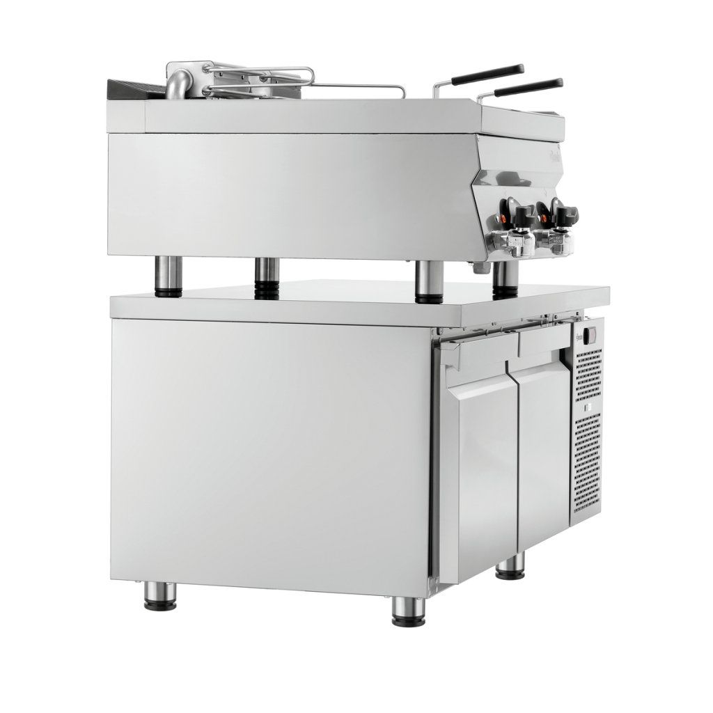 Sada 4 nožek s nastavitelnou výškou 60 až 85 mm je praktickým doplňkem pro vestavný chladicí stůl S2-200. Umožňuje přesně přizpůsobit pracovní výšku podle potřeb provozu a usnadňuje integraci zařízení do kuchyňské sestavy.