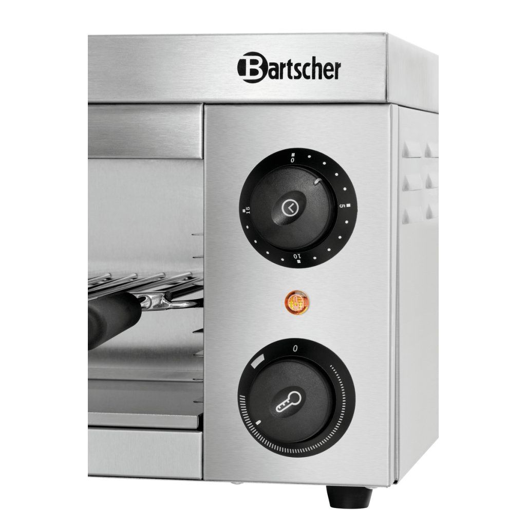 Salamander s výškově nastavitelným roštem je vybaven jednou topnou zónou, kterou lze aktivovat časovačem až na 15 minut. Díky zadním držákům je model 401-1Z-W vhodný jak pro stolní použití, tak pro nástěnnou montáž na nehořlavé povrchy, což z něj dělá univerzální řešení do profesionální gastronomie.