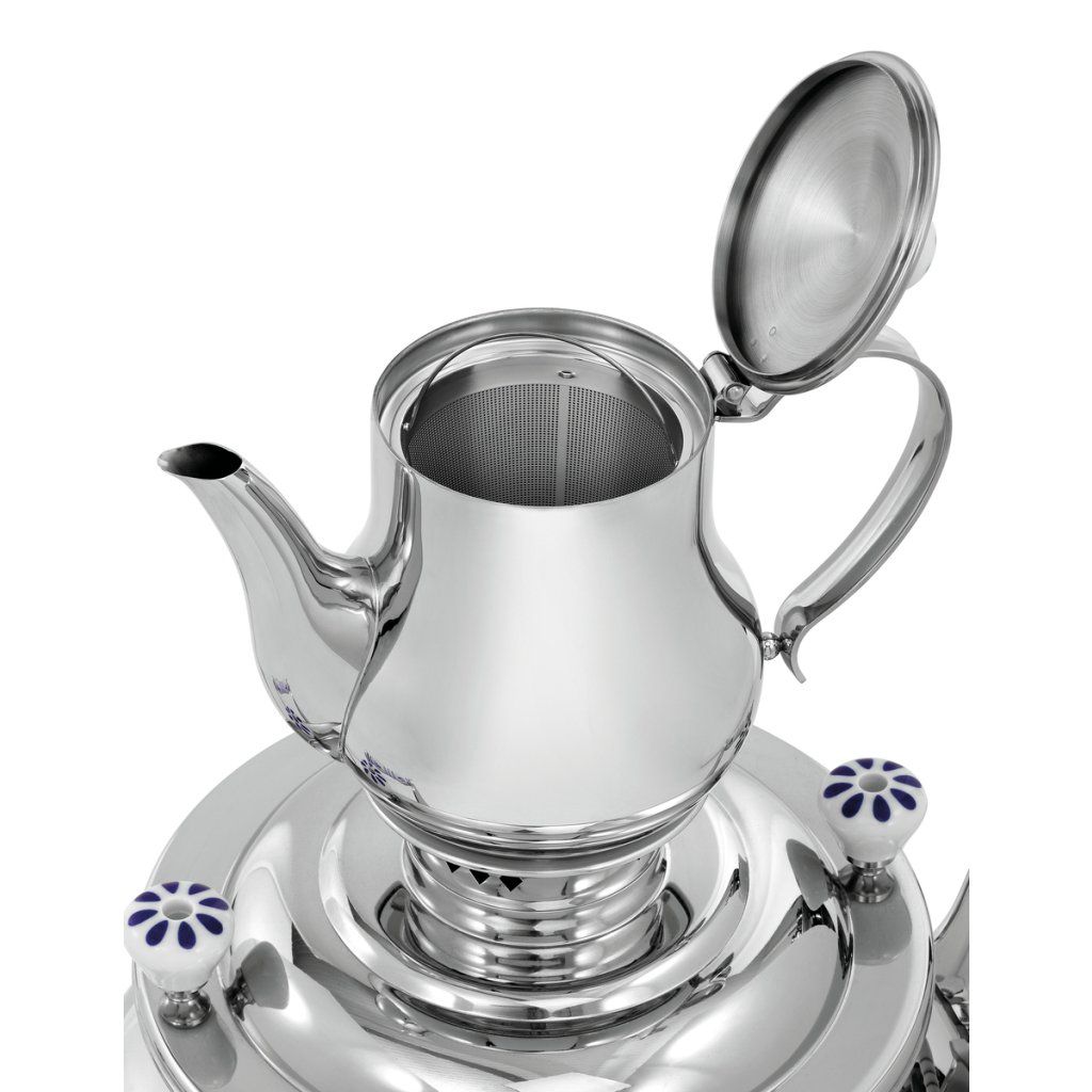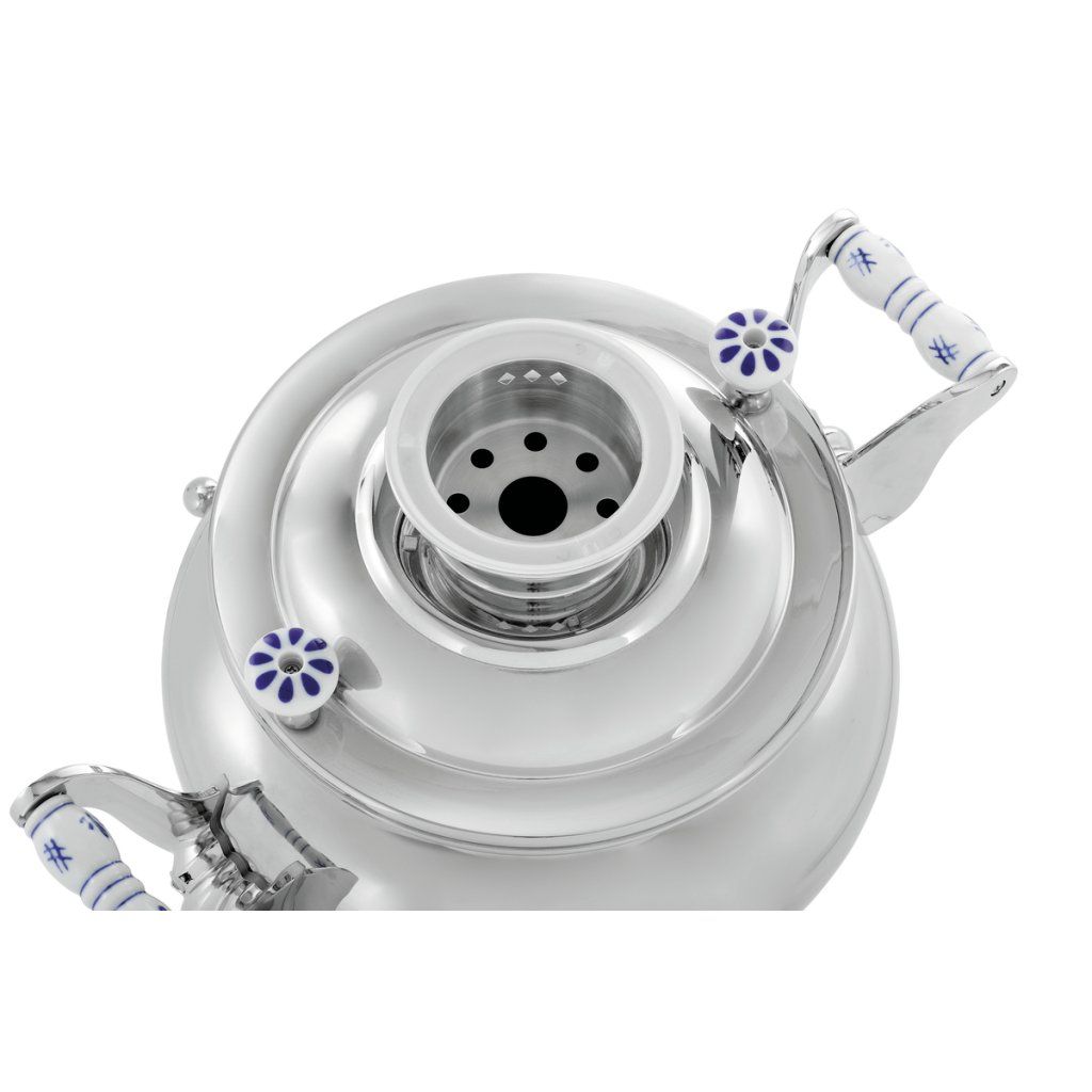Samovar s objemem 15 litrů je vhodný pro přípravu a výdej horké vody nebo čaje ve větším množství. Ideální je pro bufety, snídaňové provozy, catering i akce, kde je potřeba jednoduchá obsluha a stálá dostupnost horkých nápojů.
