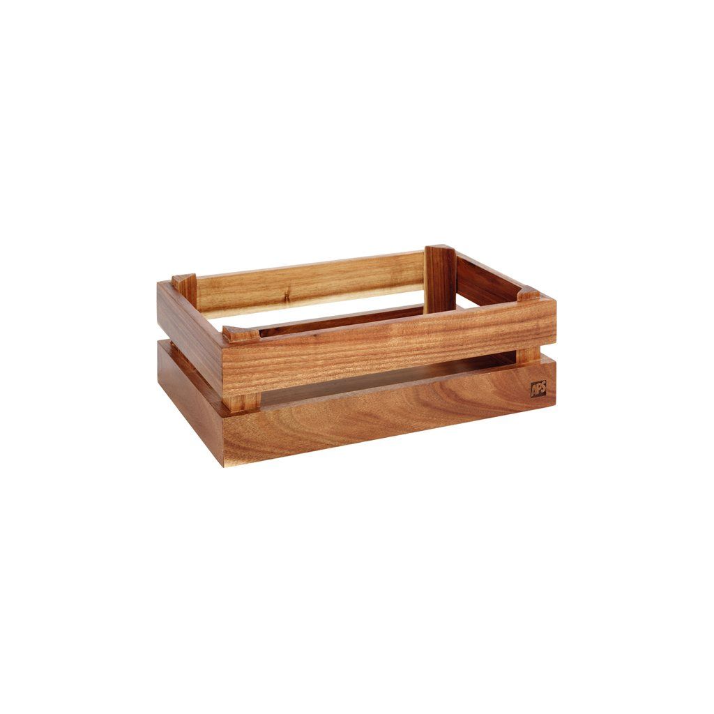 Servírovací bedýnka vyrobená z akaciového dřeva je vhodná pro originální a moderní servírovaní jídla na rautu. Může se stohovat. Nemýt v myčce.Doplňkové parametry