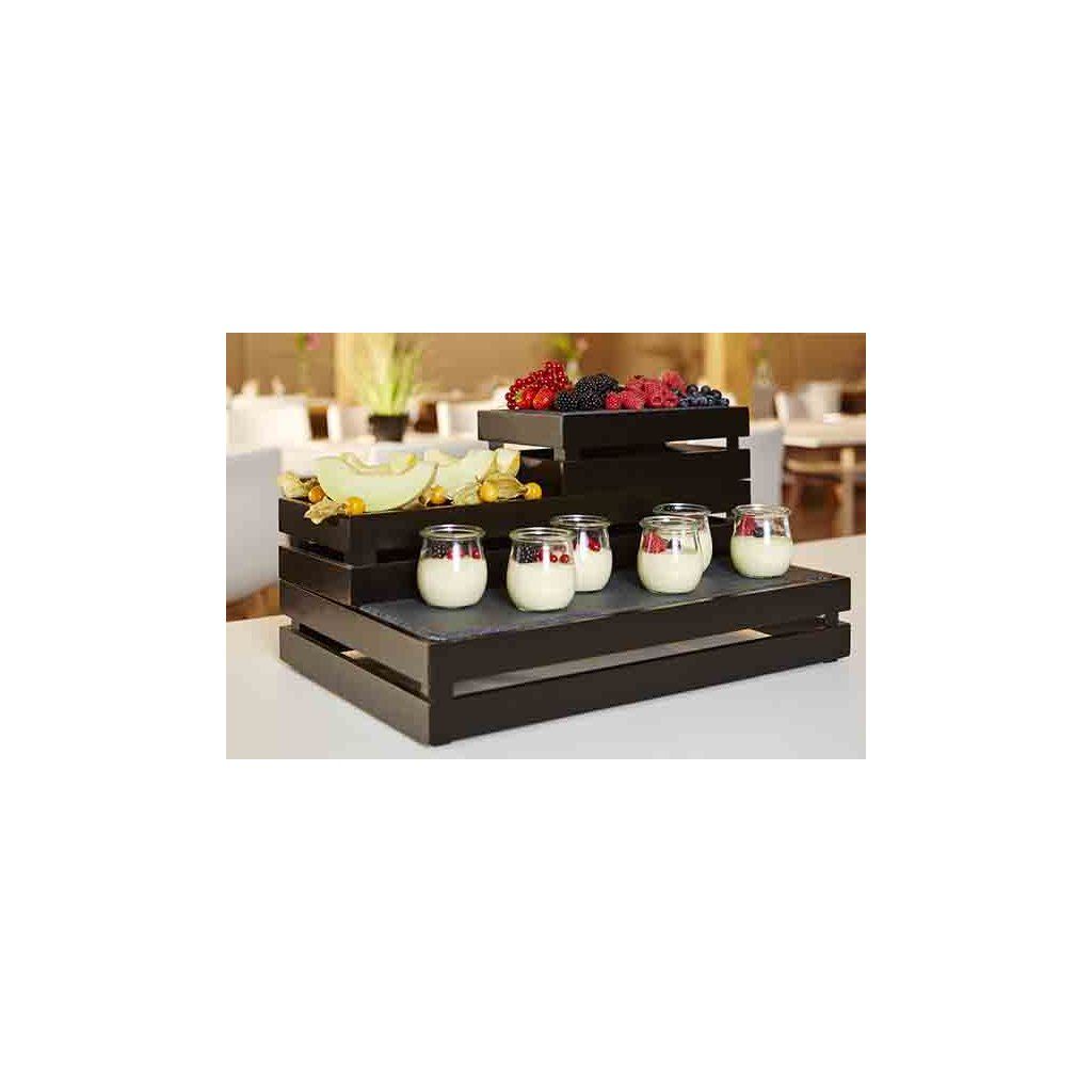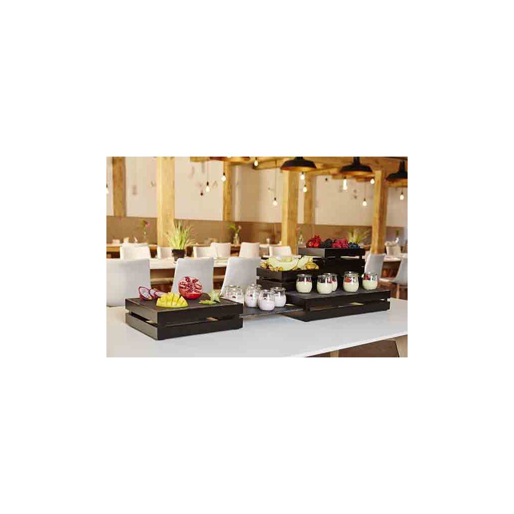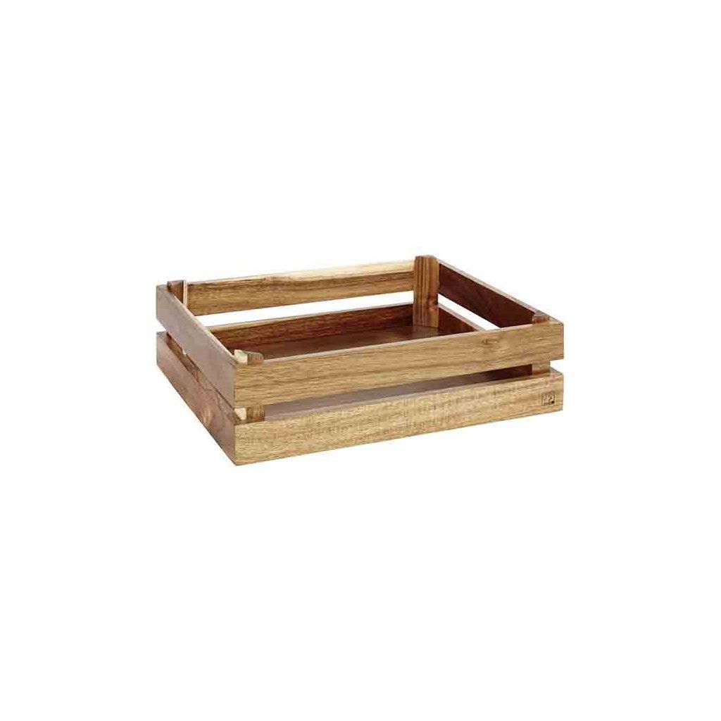 Servírovací bedýnka vyrobená z akaciového dřeva je vhodná pro originální a moderní servírovaní jídla na rautu. Může se stohovat. Nemýt v myčce.Doplňkové parametry