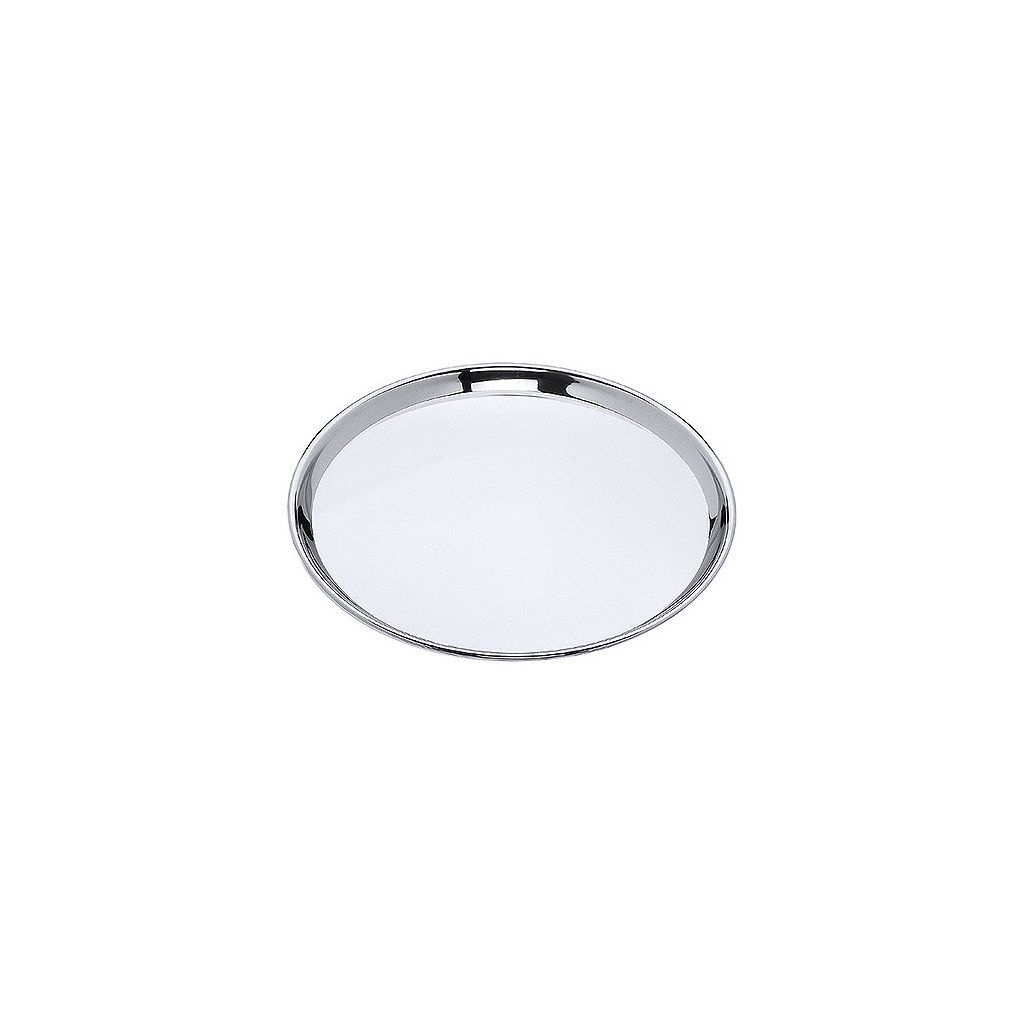 Kulatý servírovací tác z leštěné nerezové oceli s okrajem.Doplňkové parametry