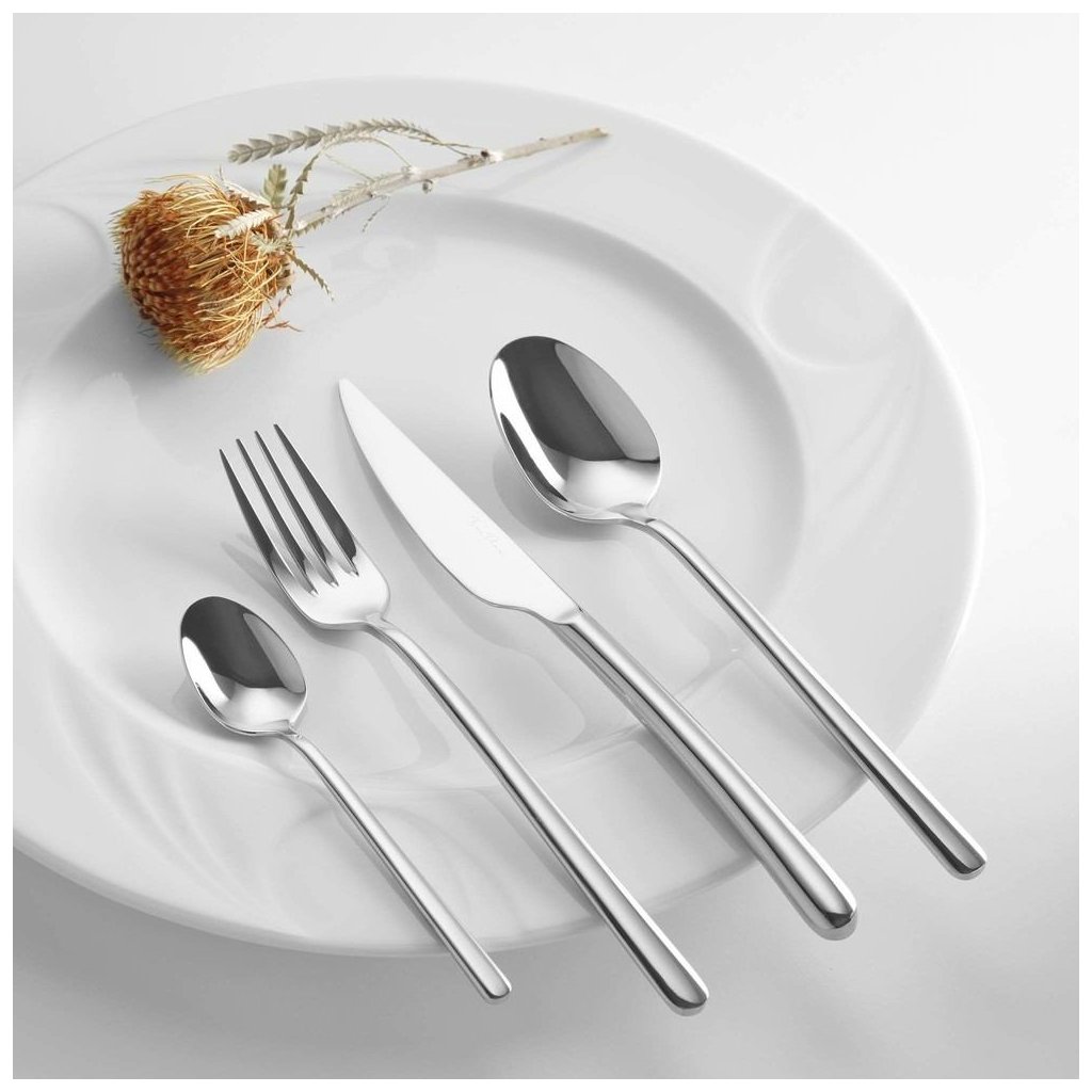 Příbory označené logem Fine Dine představují nejvyšší světovou kvalitu. Jsou vyráběny v jedné z nejmodernějších továren na světě, s dodržením všech environmentálních norem. Jsou jemné, lehké, ale zároveň velmi odolné a mají jedinečný design. K jejich výrobě používáme nejkvalitnější německou chrom-niklovou nerezovou ocel 18/10. Příbory Fine Dine jsou několikrát leštěny, posledním krokem procesu je ruční leštění metodou High Mirror Polishing, které jim dodává neobyčejný lesk. Vyrobeno z oceli 18/10 - Tloušťka 4 mm - Lze mýt v myčce nádobí. mmDoplňkové parametry