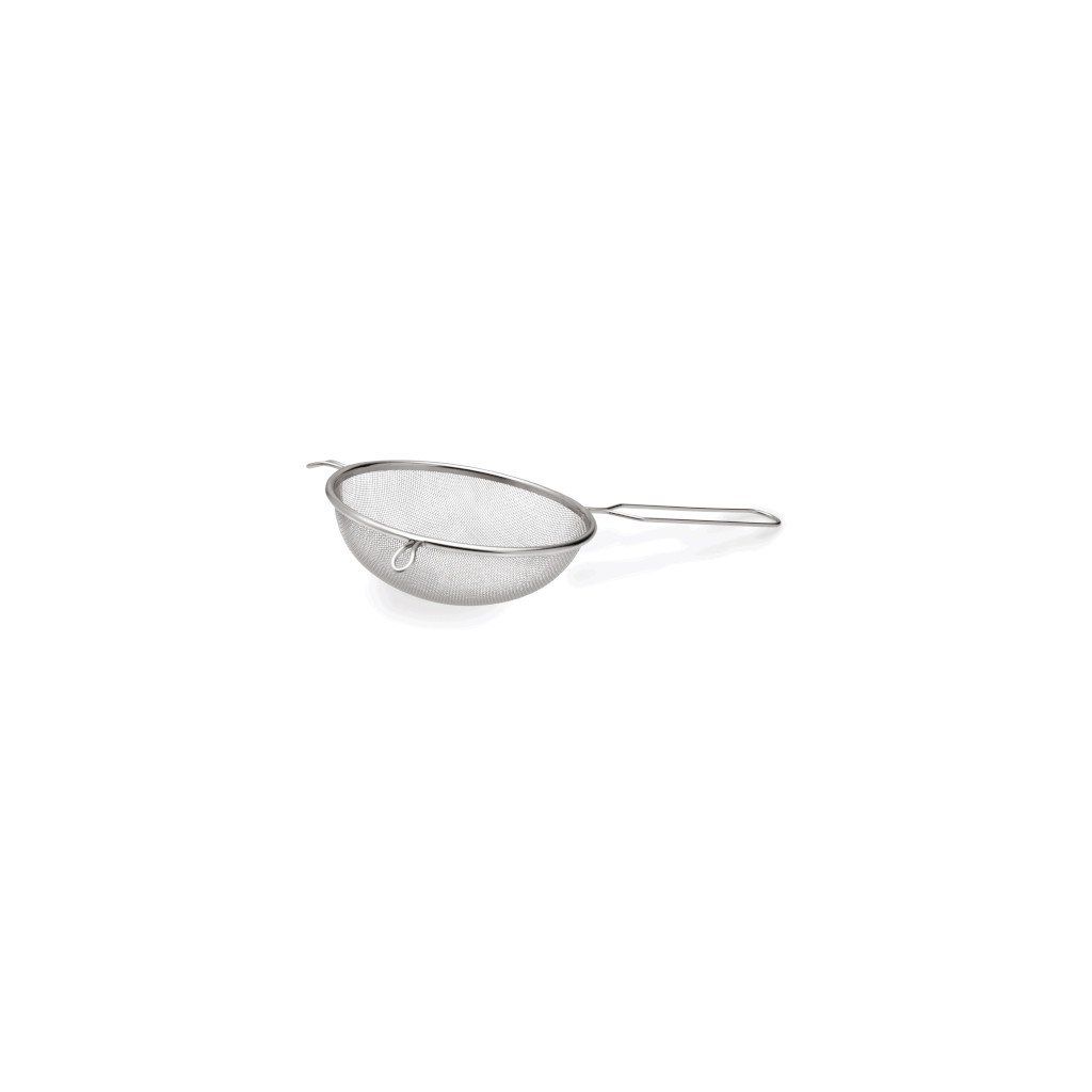 Hrubé síto se hodí pro prosévání sypkých surovin nebo okapávání ingrediencí. Velikost ok je 1,5 mm. Díky praktické drátěné rukojeti ho lze kdekoliv zavěsit a protilehlá držadla slouží jako opěrka na hrnec a pro snadné přenášení.Síto hrubé pr. 18 cm