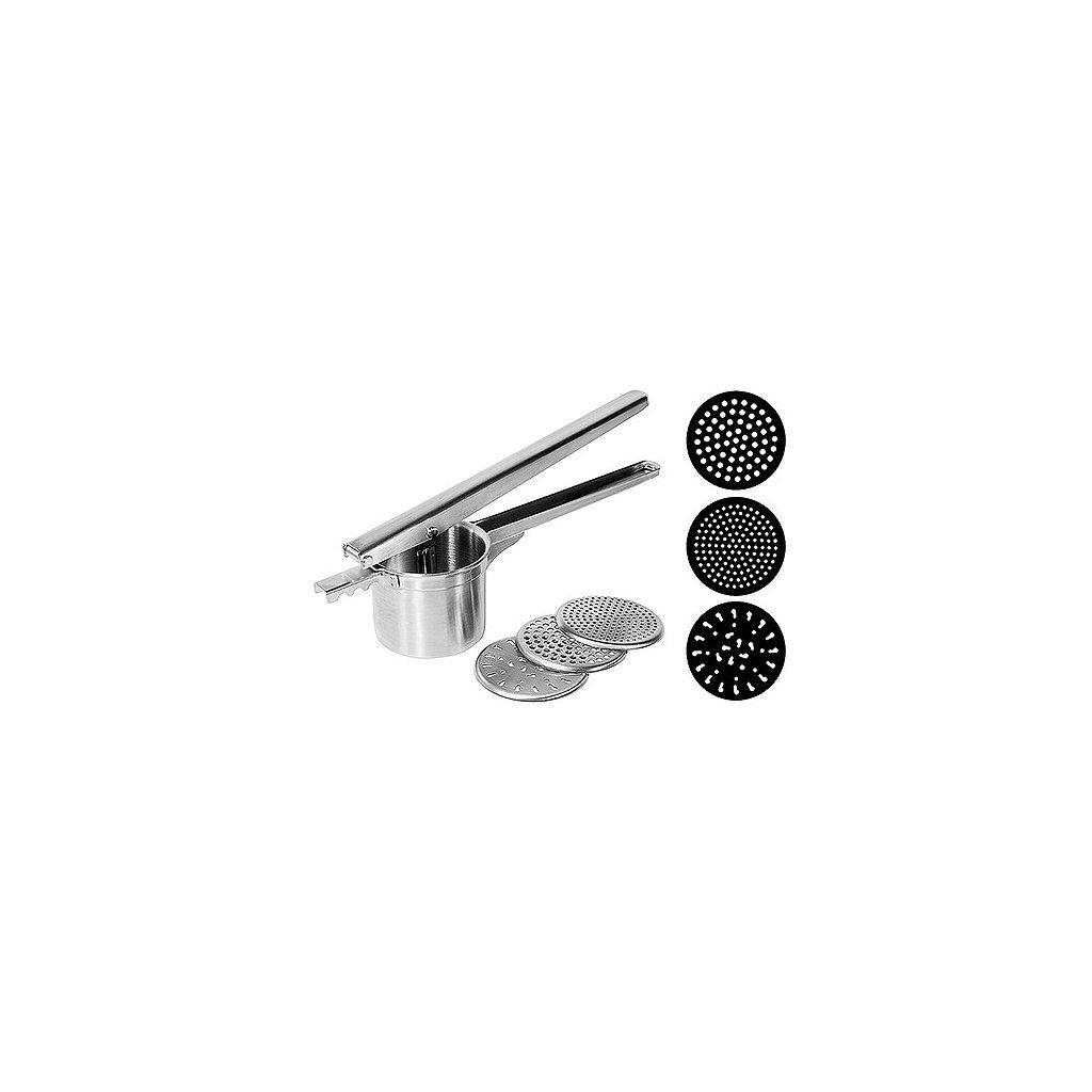 Lis na halušky vyrobený ze saténové nerezové oceli se třemi výměnnými disky. Vhodný do myčky.Doplňkové parametry