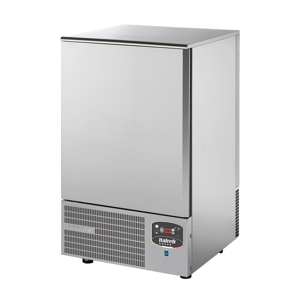 Šokový schlazovač a zmražovač: • zařízení pro rychlé schlazování nebo rychlé zmražování připravovaných pokrmů • šokové schlazování: od +70°C do +3°C za 90 minut, šokové zmražování: od +70°C do -18°C za 240 minut • digitální ovládací panel • zařízení vyrobené z nerezové oceli • zaoblené rohy komory pro snadnější čištění • zabudovaný agregát • sonda