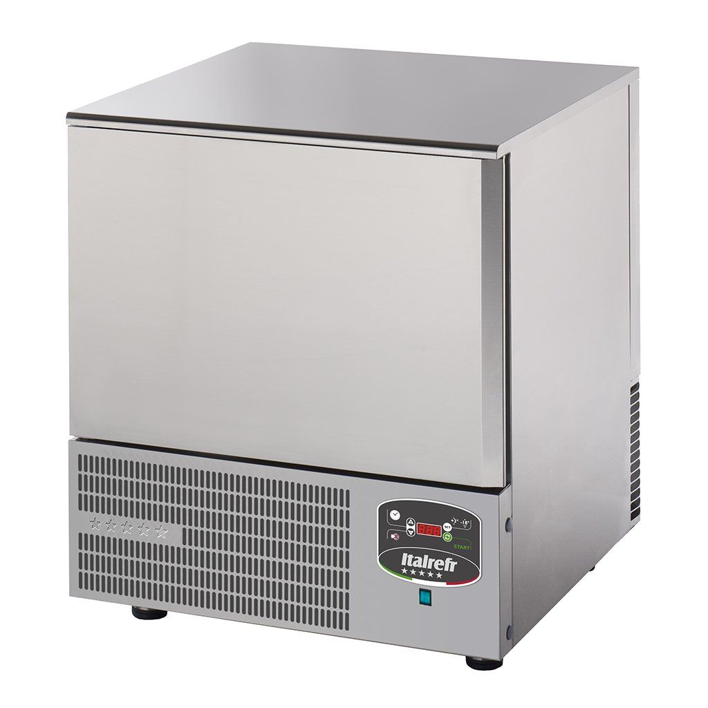 Šokový schlazovač/zmražovač: • zařízení pro rychlé schlazování nebo zmražování pokrmů • šokové schlazování: od +70°C do +3°C za 90 minut, šokové zmražování: od +70°C do -18°C za 240 minut • digitální ovládací panel • vyrobený z nerezové oceli • zaoblené rohy pro snadné čištění • zabudováný agregát • se sondou