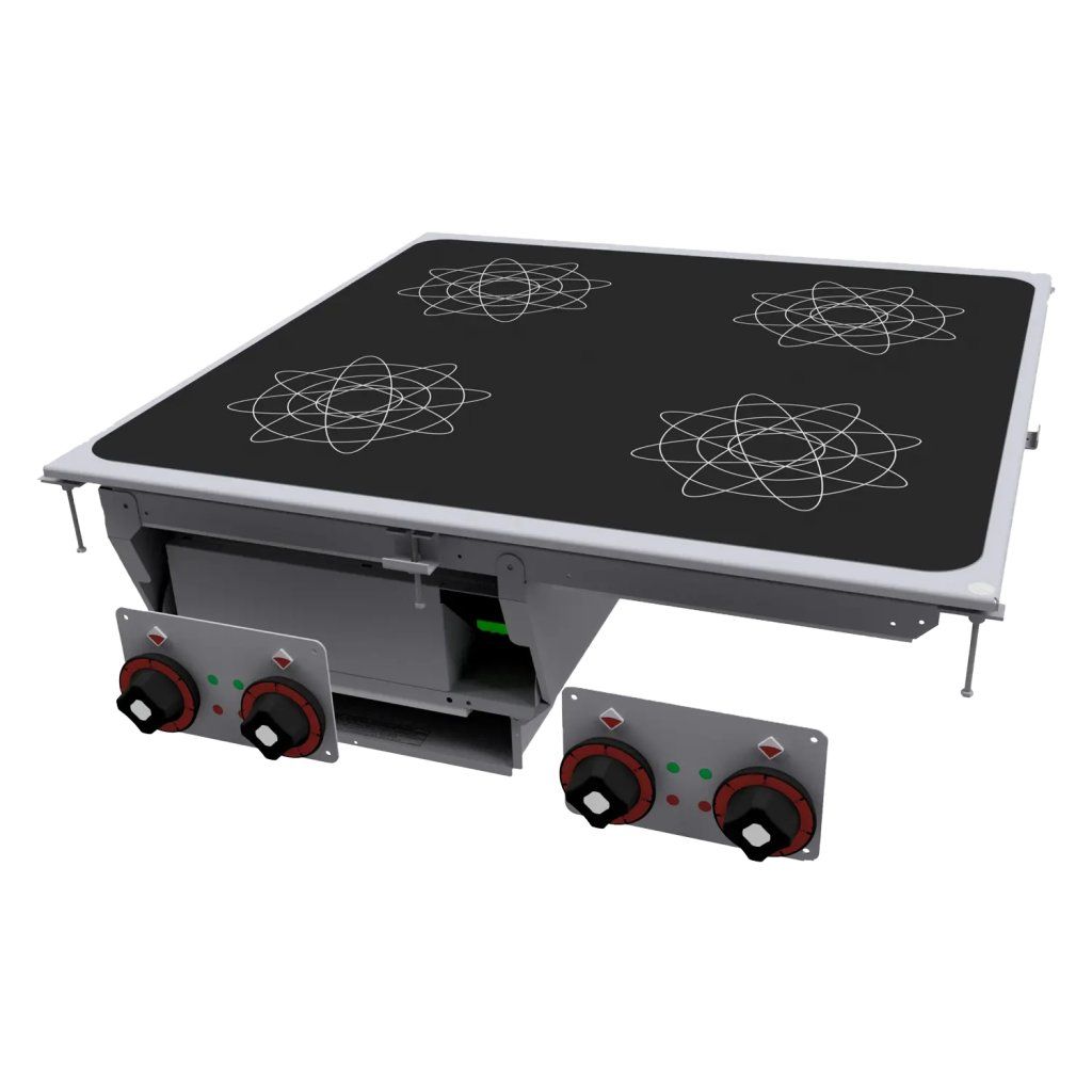 Sap kód: 00013593; Šířka netto [mm]: 800; Hloubka netto [mm]: 800; Výška netto [mm]: 422; Hmotnost netto [kg]: 43.00; Šířka brutto [mm]: 830; Hloubka brutto [mm]: 970; Výška brutto [mm]: 540; Hmotnost brutto [kg]: 50.00; Typ spotřebiče: Elektrické zařízení; Konstruční typ zařízení: Drop-in; Příkon elektrický [kW]: 20.000; Napájení: 400 V / 3N - 50 Hz; Stupeň krytí ovládacích prvků: IPX5; Materiál: Nerez; Typ vrchní desky: Prolisovaná - komfortní údržba čištění; Materiál vrchní desky: AISI 304; Tloušťka vrchní desky [mm]: 2.00; Počet zón: 4; Příkon zóny 1 [kW]: 5; Příkon zóny 2 [kW]: 5; Příkon zóny 3 [kW]: 5; Příkon zóny 4 [kW]: 5; Typ ovládání výkonu: Knoflíkové; Počet stupňů regulace výkonu: 6; Servisní přístup: Zepředu odejmutím čelního panelu a nádob na odpadní tekutiny; Počet hořáků/ploten: 4; Typ elektrických varných zón: Indukční; Rozměr sklokeramické desky [mm x mm]: 750 x 770; Průřez vodičů CU [mm²]: 10;Buďte první, kdo napíše příspěvek k této položce.