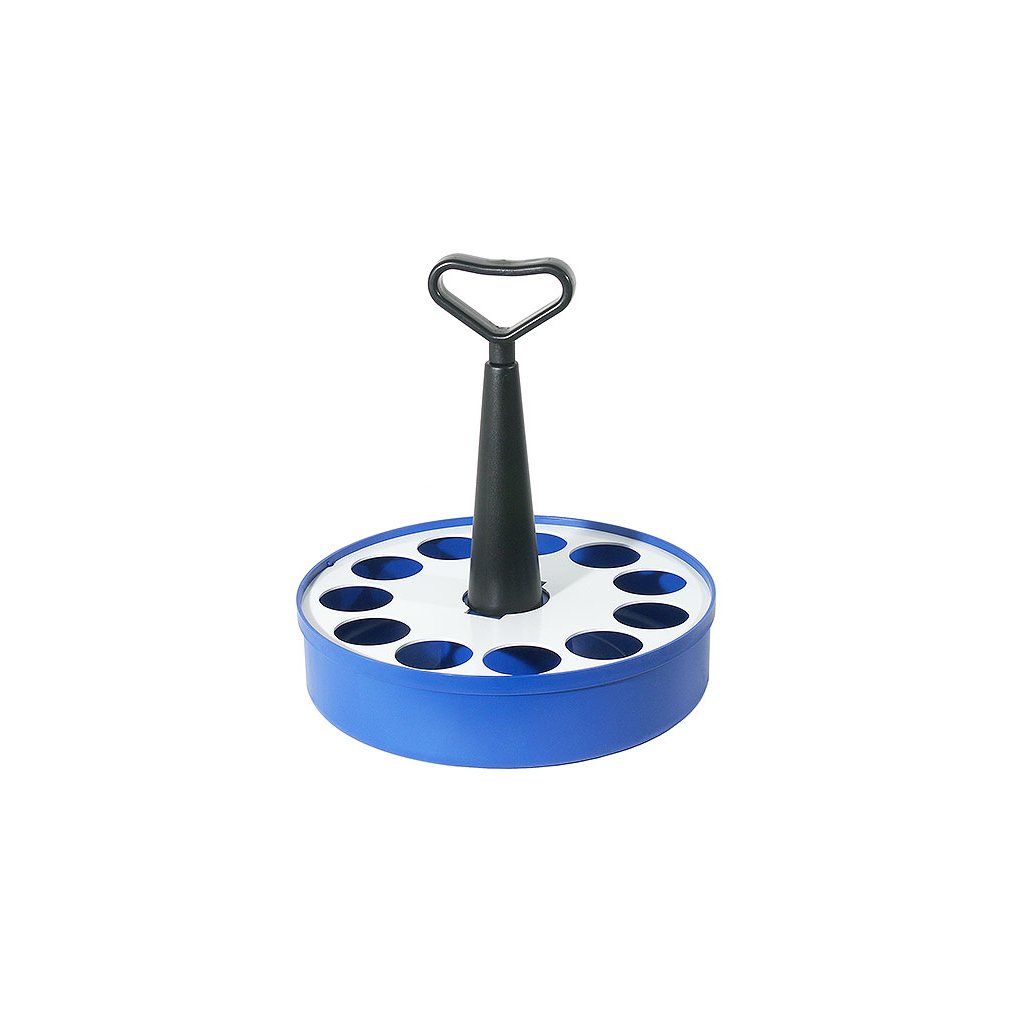Rozkládací stojan na sklenice je vyrobený z modré umělé hmoty s pevným úchopem pro přenášení. Jedenáct otvorů na sklenice o průměru 55 mm.Doplňkové parametry