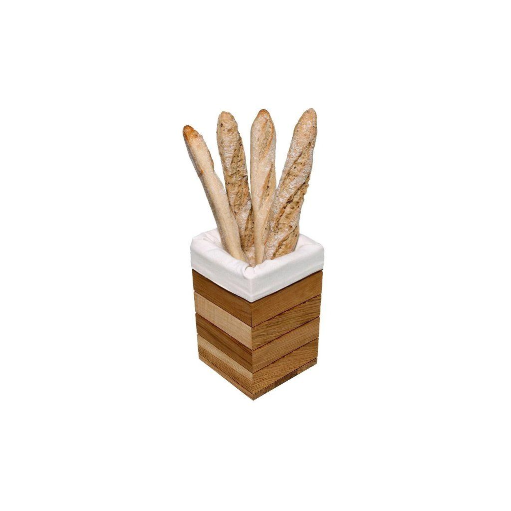 Stojan, který vám pomůže s elegantní prezentací baget či jiného pečiva v rámci bufetů a jiných rautů. Vyrábí se z kvalitního dubového dřeva napuštěného přírodním olejem, a proto se nehodí pro mytí v komerčních myčkách nádobí.Stojan na bagety 26 × 17,5 cm