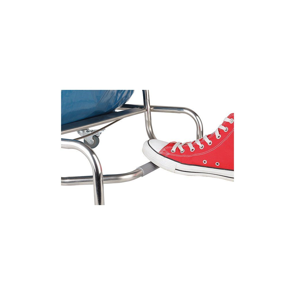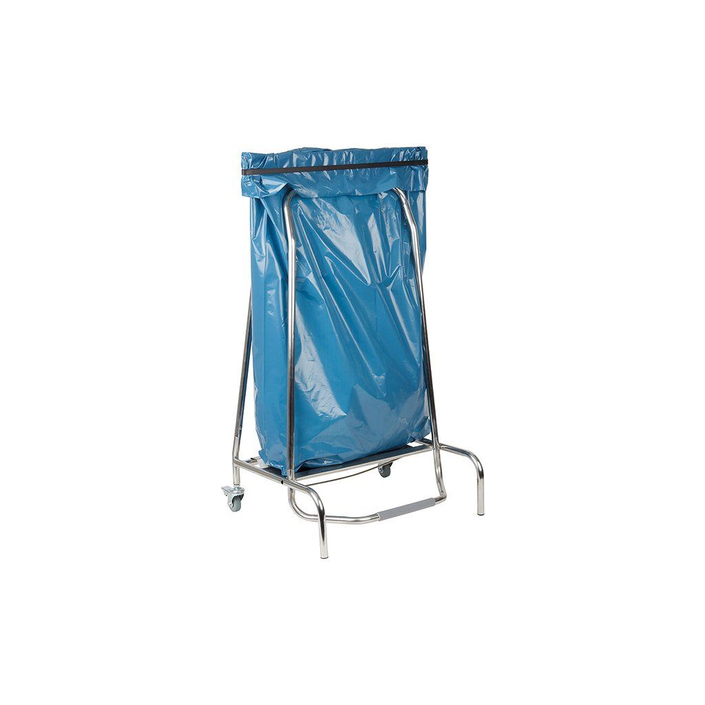 Stojan vyrobený z nerezové oceli. Součásti je pedál na otevírání a zavírání sáčku, 2 kolečka s brzdou. Vhodný na sáčky do 120 l (1100x700 mm). Rozměr mezi gumovými sponami a podstavcem je 820 mm.Doplňkové parametry