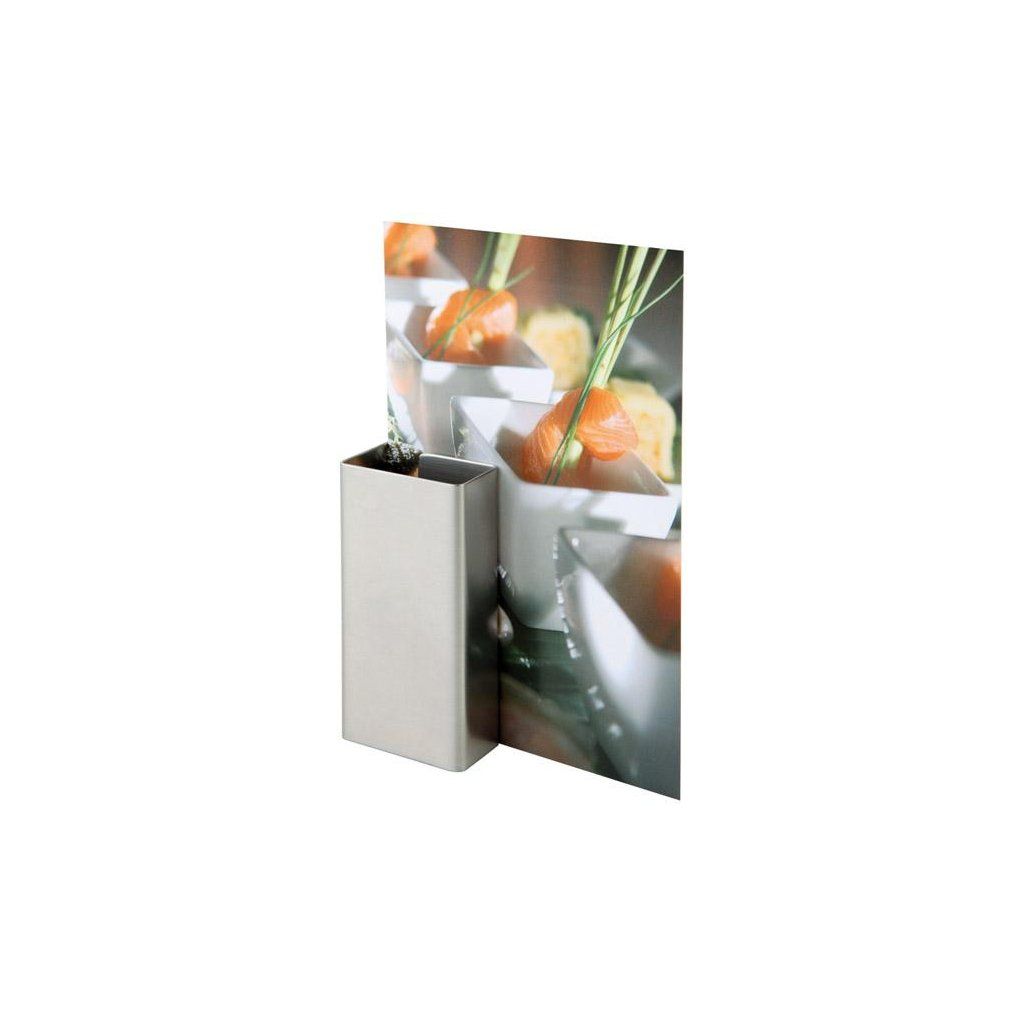 Stojan na menu vyrobený ze saténové nerezové oceli. Součásti 2 kusy. Vhodné do myčky.Doplňkové parametry