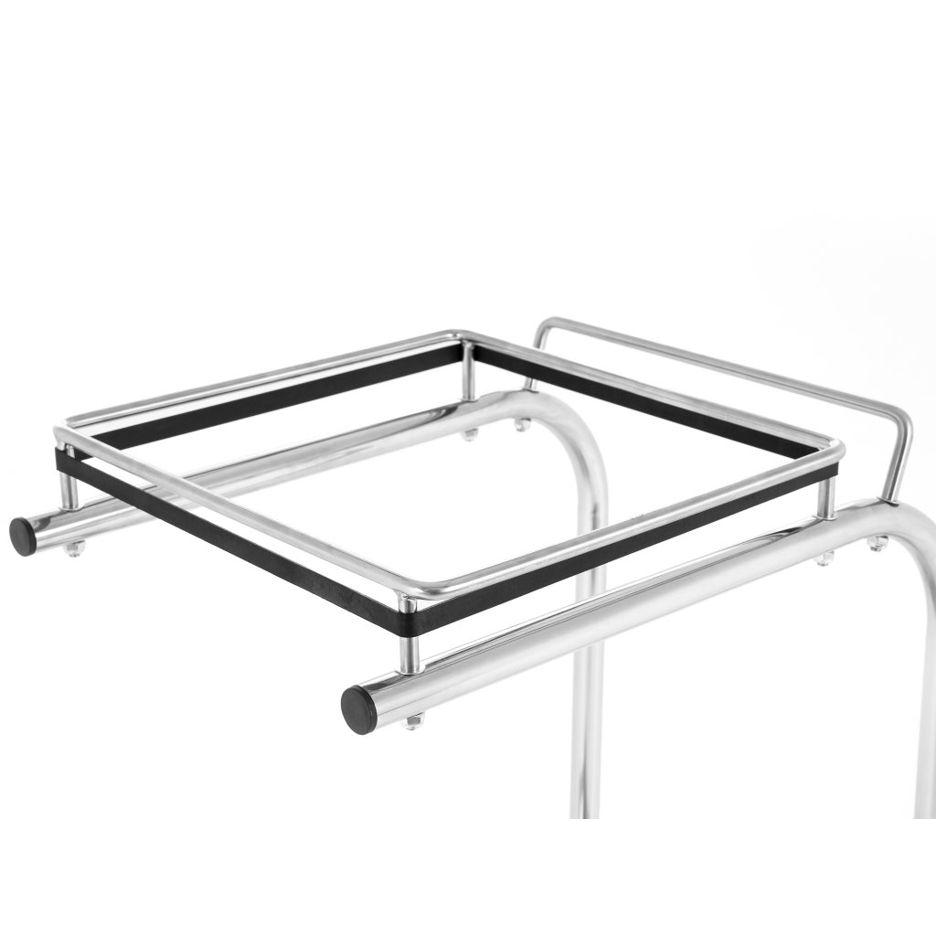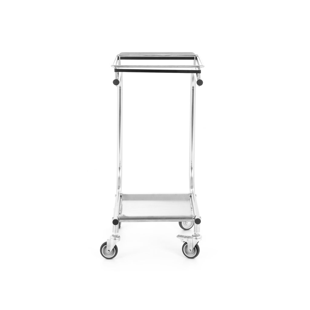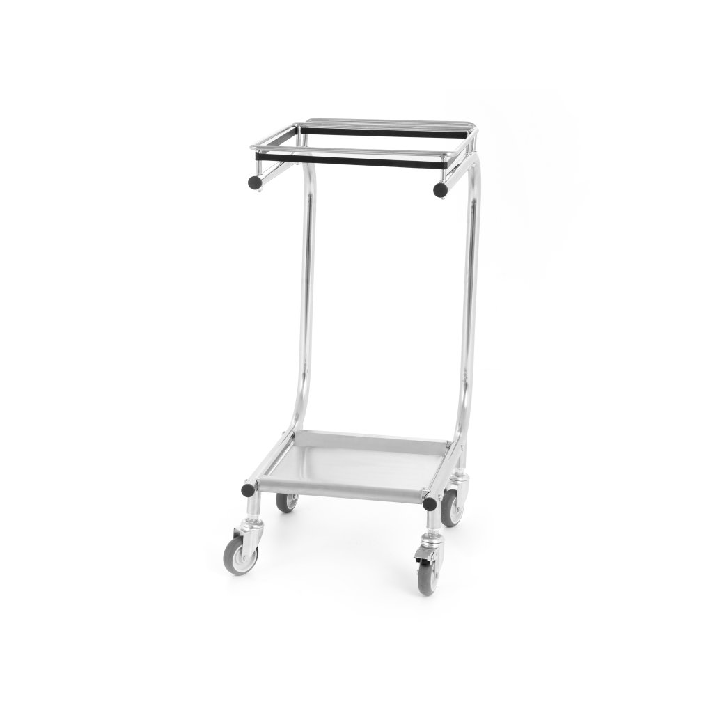 Nerezový stojan na pytle na odpad. Má 2 kolečka s brzdami pro pohodlnou přepravu regálu. Svorku na pytle lze otevřít pomocí pedálu. Vhodné pro tašky o objemu přibližně 120 litrů. Pružná guma zabraňující vyklouznutí tašky.Doplňkové parametry