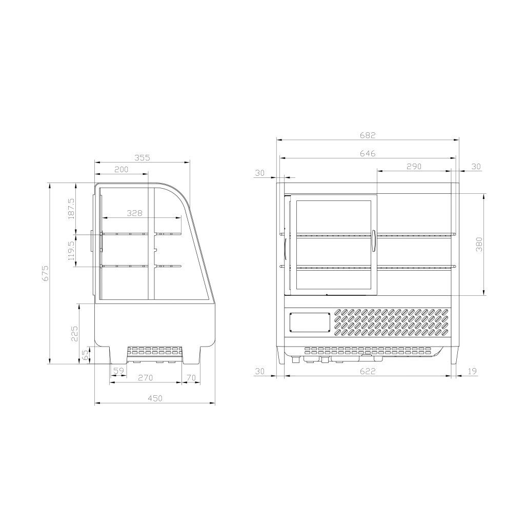 Stolní chladicí vitrína 100 l, 682x450x675 mm | TECHNICA, Cold Line