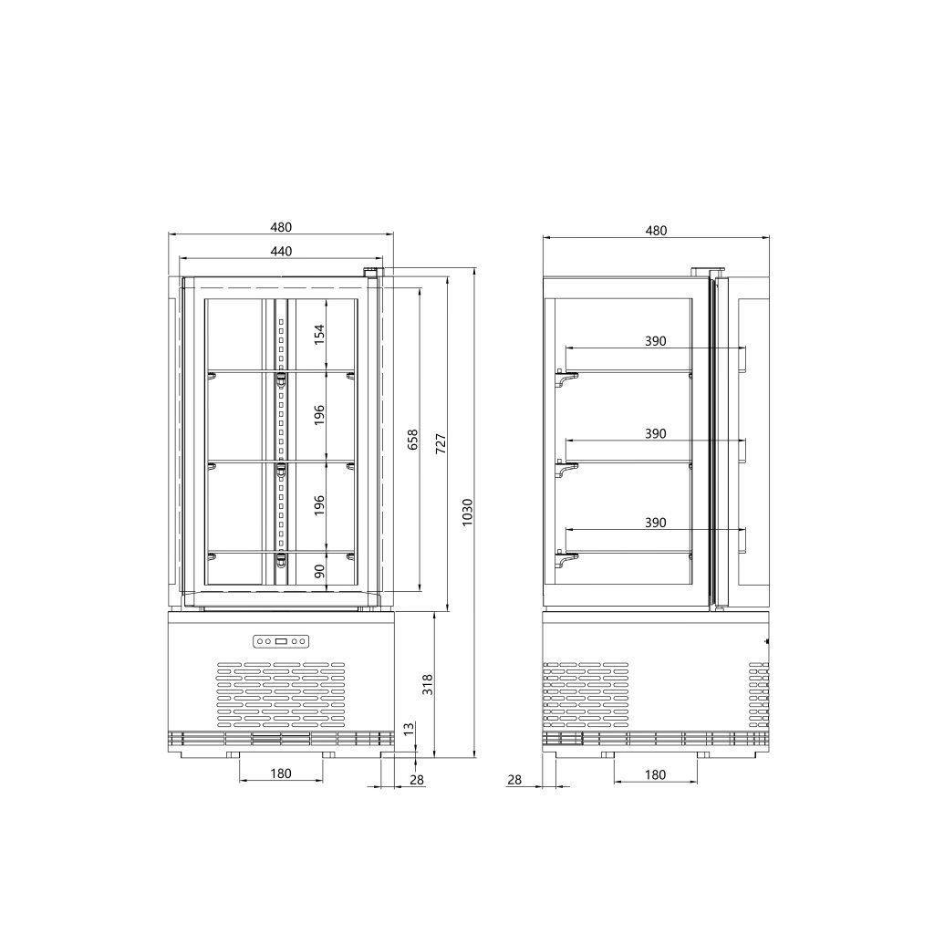 Stolní chladicí vitrína 100 l, kulatá 480x1030 mm | TECHNICA, Cold Line