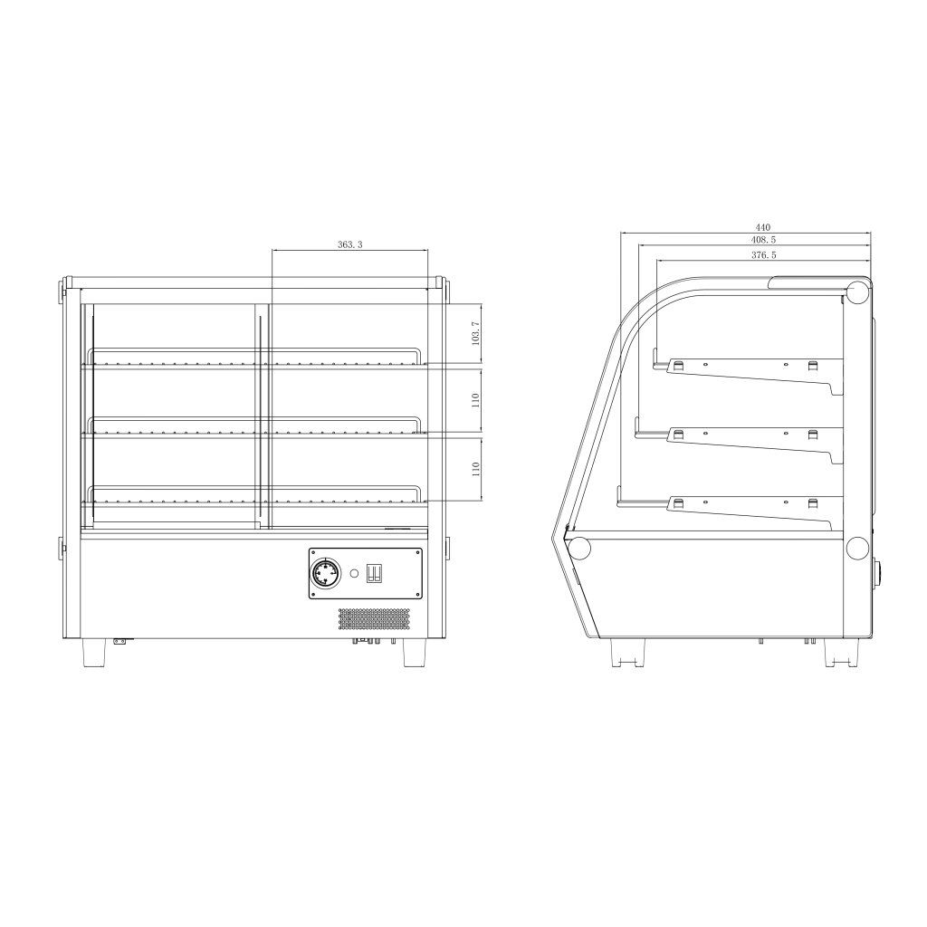 • Prosklené ze 4 stran• Zaoblené přední sklo• Dvojitá skla• Dvoukřídlé dveře• Odolné chromované police • Maximální zatížení police 15 kg• Povrch dolní police 812x398 mm• Povrch prostřední police 812x367 mm• Povrch horní police 812x335 mm• LED vnitřní osvětlení• Teplota nastavitelná manuálně• TeploměrDoplňkové parametry