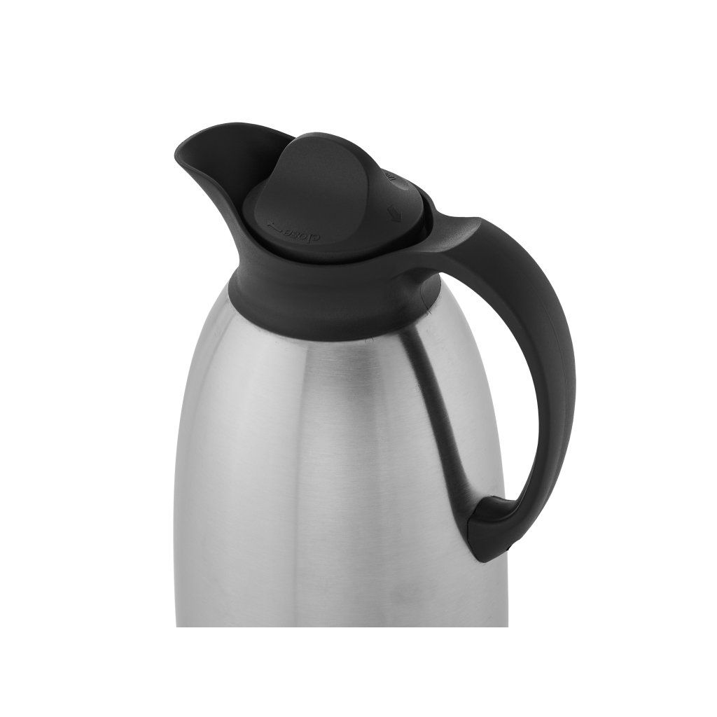 • Stolní termoska, objem 1500 ml• Konstrukce termosky umožňuje skladování jak teplých tak i studených nápojů• Jednoduchý, monochromatický design se bude skvěle vyjímat v konferenčních sálech, restauracích, jídelnách a hotelech • Produkt je vybaven tlačítkem, které usnadňuje servírování • Dvojité stěny z nerezové oceli zaručují dlouhotrvající uchování vysoké teploty • Víko i tlačítko jsou vyrobeny z kvalitní umělé hmoty - polypropylenu, který je určen pro styk s potravinami • Nepoužívanou termosku je potřeba uchovávat otevřenouDoplňkové parametry