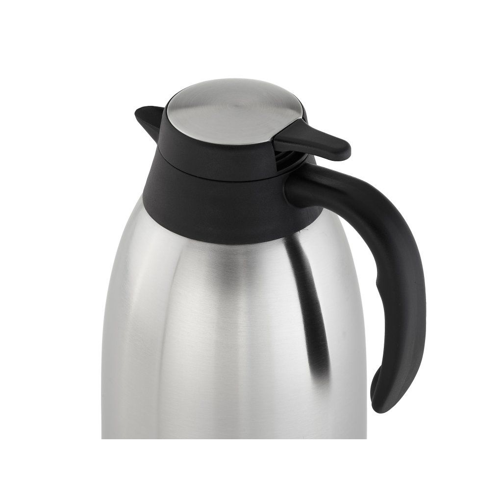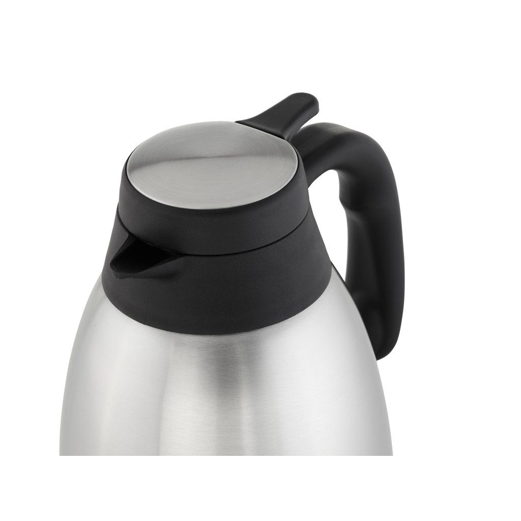 Stolní termoska Technica President Line je elegantní a funkční řešení pro uchovávání a podávání teplých i studených nápojů. Díky jednoduchému jednobarevnému designu se termoska skvěle hodí do zasedacích místností, restaurací, jídelen a hotelů. Její funkčnost byla vylepšena přidáním tlačítka, které usnadňuje nalévání nápojů a poskytuje pohodlí a komfort v profesionálním prostředí.