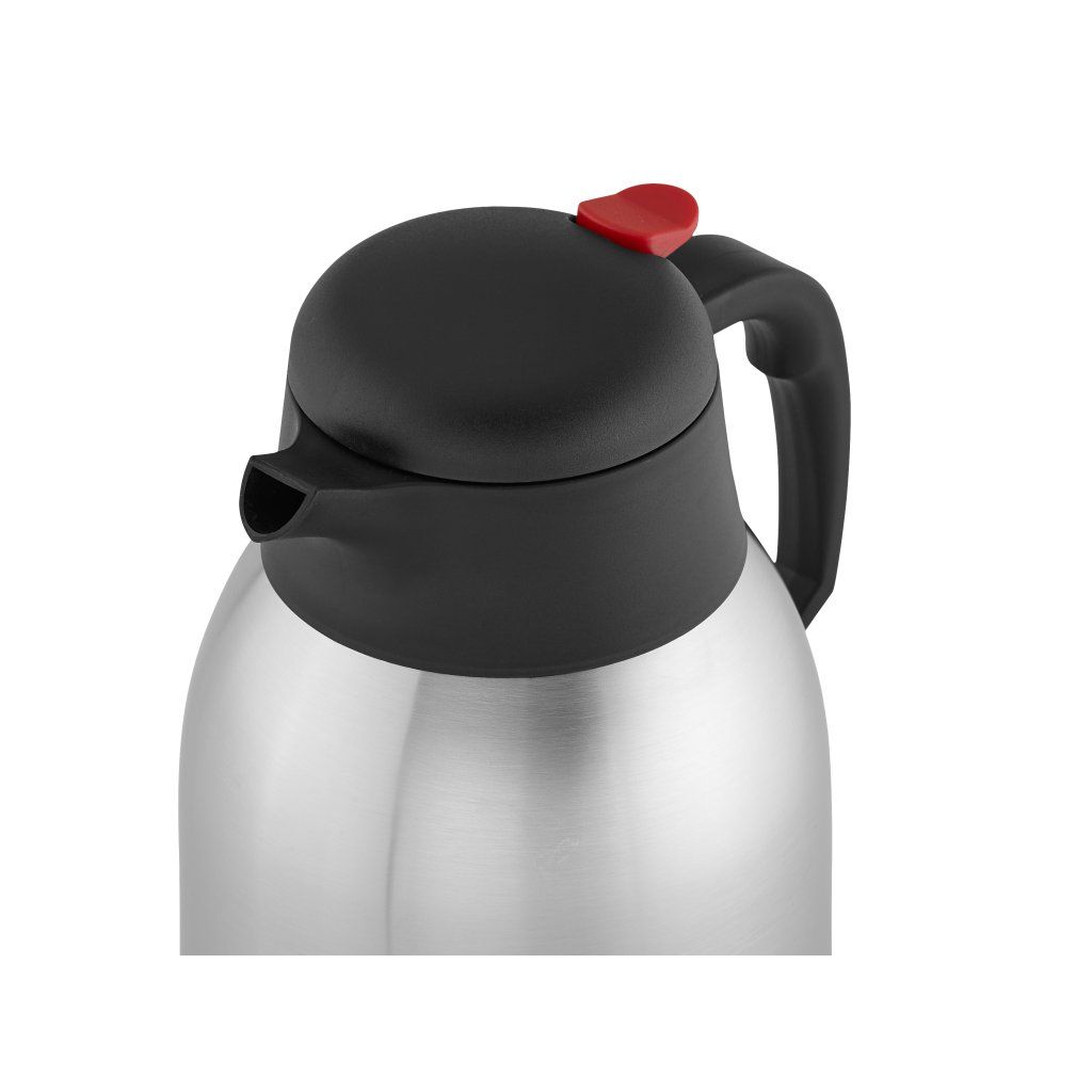 • Stolní termoska, objem 1500 ml• Konstrukce termosky umožňuje skladování jak teplých tak i studených nápojů• Jednoduchý, monochromatický design se bude skvěle vyjímat v konferenčních sálech, restauracích, jídelnách a hotelech • Produkt je vybaven tlačítkem, které usnadňuje servírování • Dvojité stěny z nerezové oceli zaručují dlouhotrvající uchování vysoké teploty • Víko i tlačítko jsou vyrobeny z kvalitní umělé hmoty - polypropylenu, který je určen pro styk s potravinami • Nepoužívanou termosku je potřeba uchovávat otevřenouDoplňkové parametry