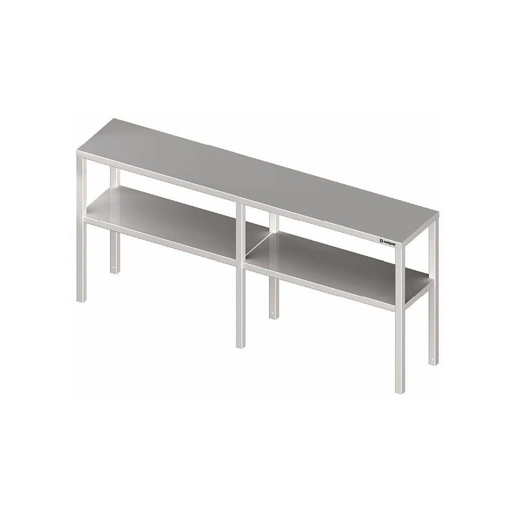 Stolový nádstavec dvoupatrový 1800x400x700 mm vyrobený z kvalitní nerezové oceli, svařovaný. Zpevněná police. Montáž nádstavce v standardu.Doplňkové parametry